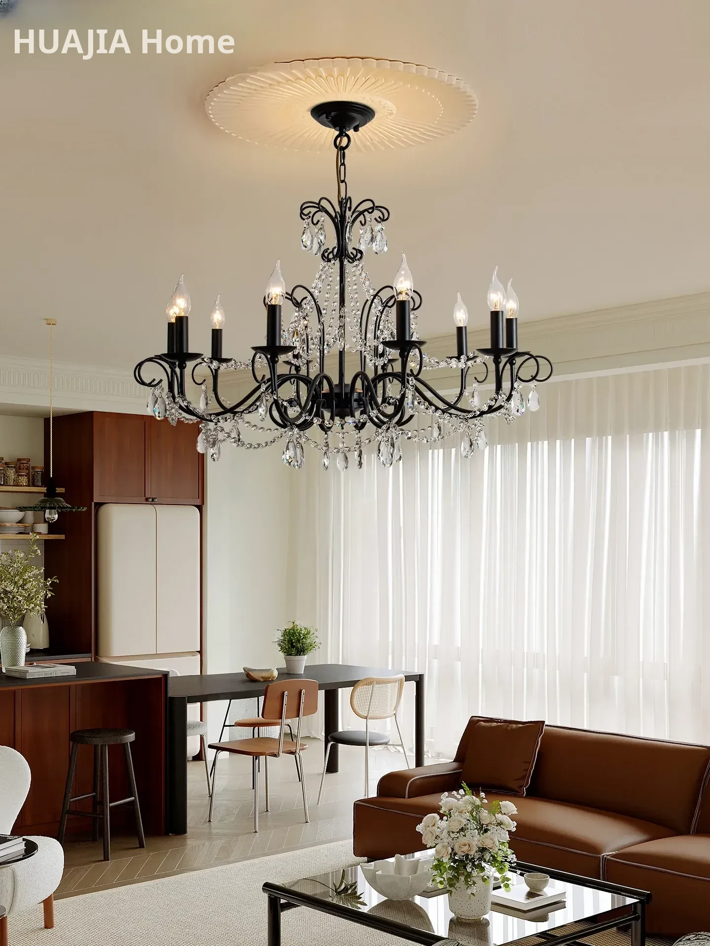 Elegant French Crystal Chandelier - Black American Candle Decor for Living Room & Dining Room, New Luxury Lighting for Villa & Bedroom