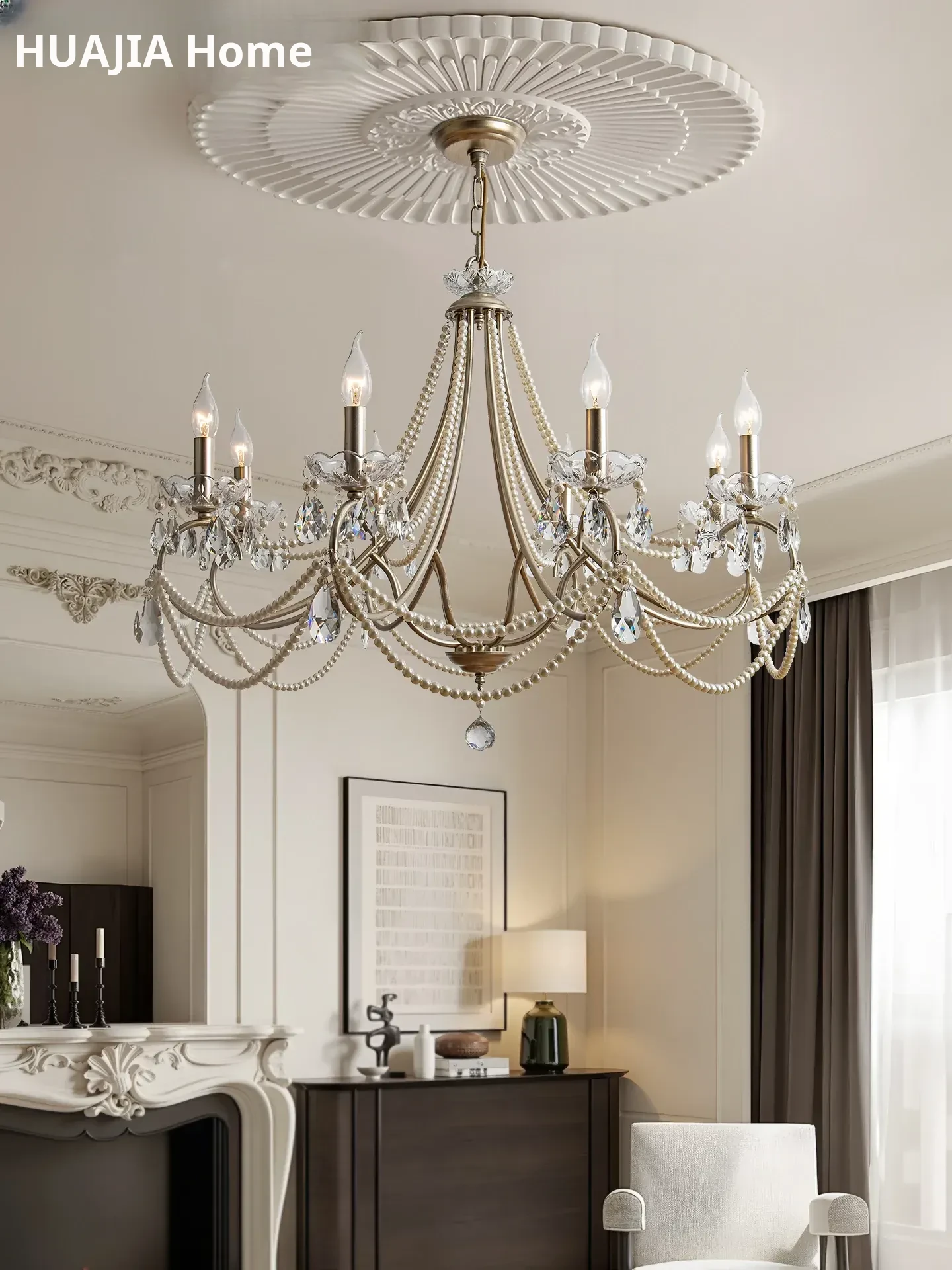 Elegant French Vintage Chandelier - Stunning Silver Pearl Crystal Lighting for Living Room, Dining Room, Bedroom, and Study - Perfect American Retro Style Home Decor
