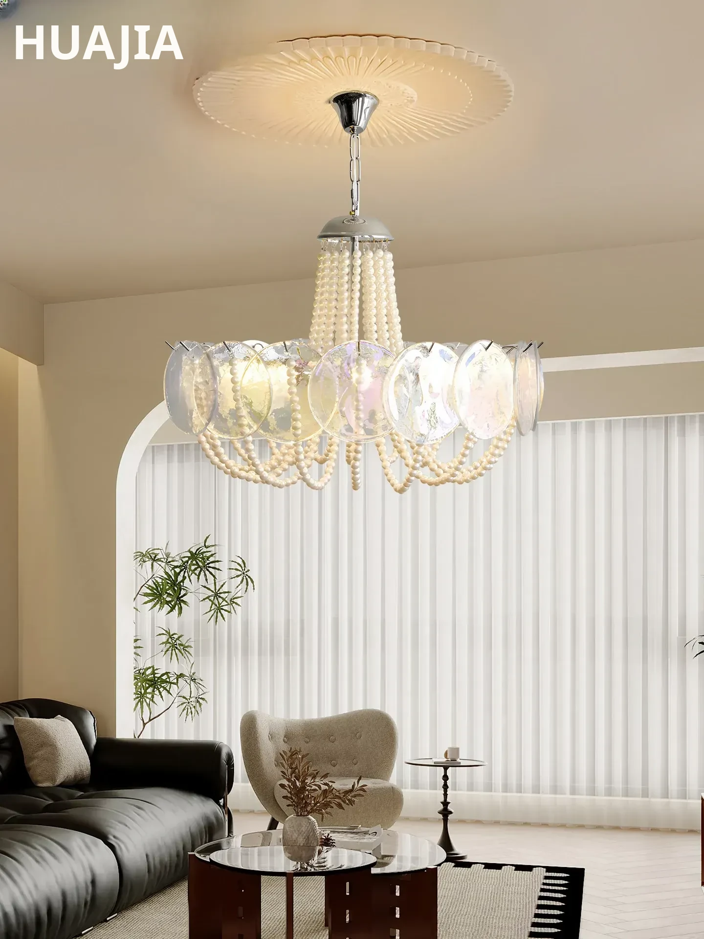 Elegant French Chandelier - Stylish Minimalist Pendant Light for Living Room, Bedroom, and Dining Room with Pearl Glass Accents - Add a Touch of Luxury to Your Home Décor!