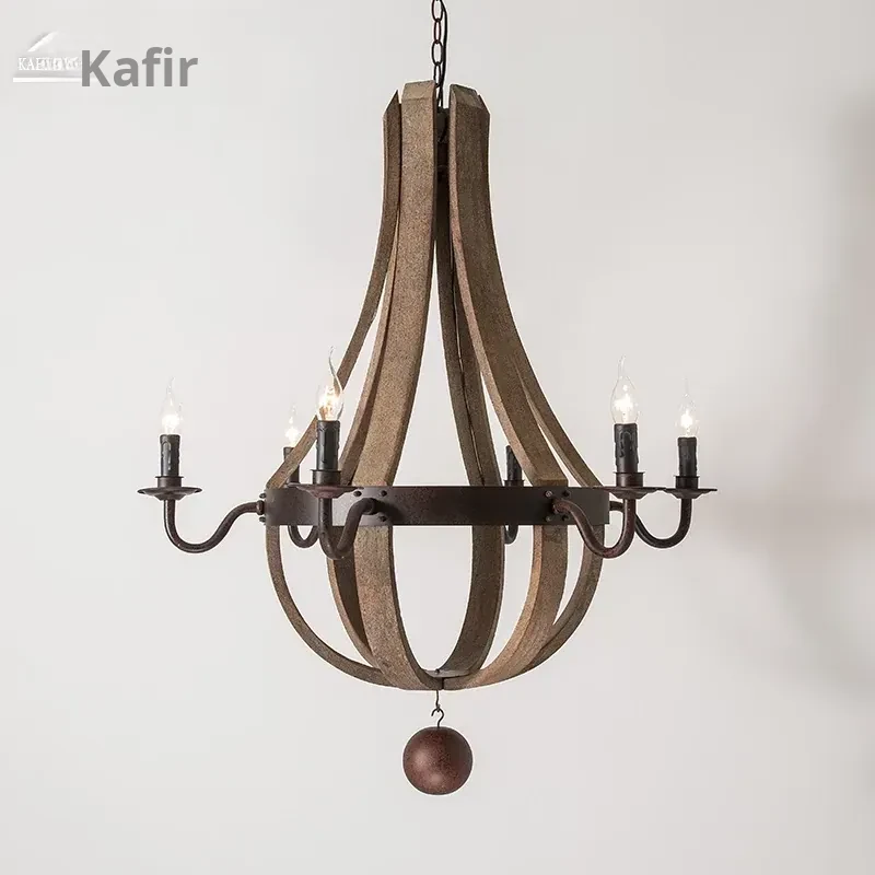 Rustic American Country Chandelier - Vintage Solid Wood Pendant Light for Weddings, Clothing Stores, Duplexes, Villas, Restaurants, and Guesthouses