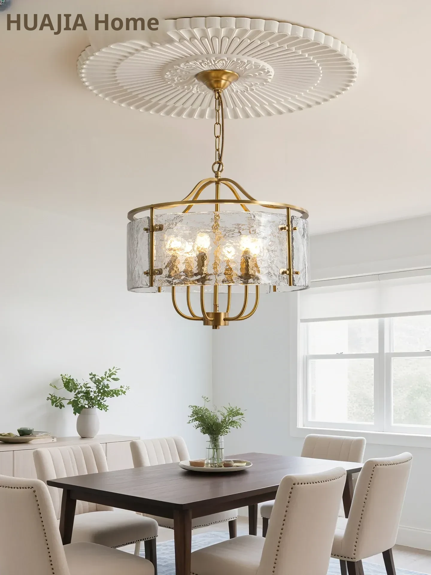 Elegant American-French Vintage Chandelier - High-End All-Copper Bedroom Light, Glass Dining Table Fixture for Study and Dining Room