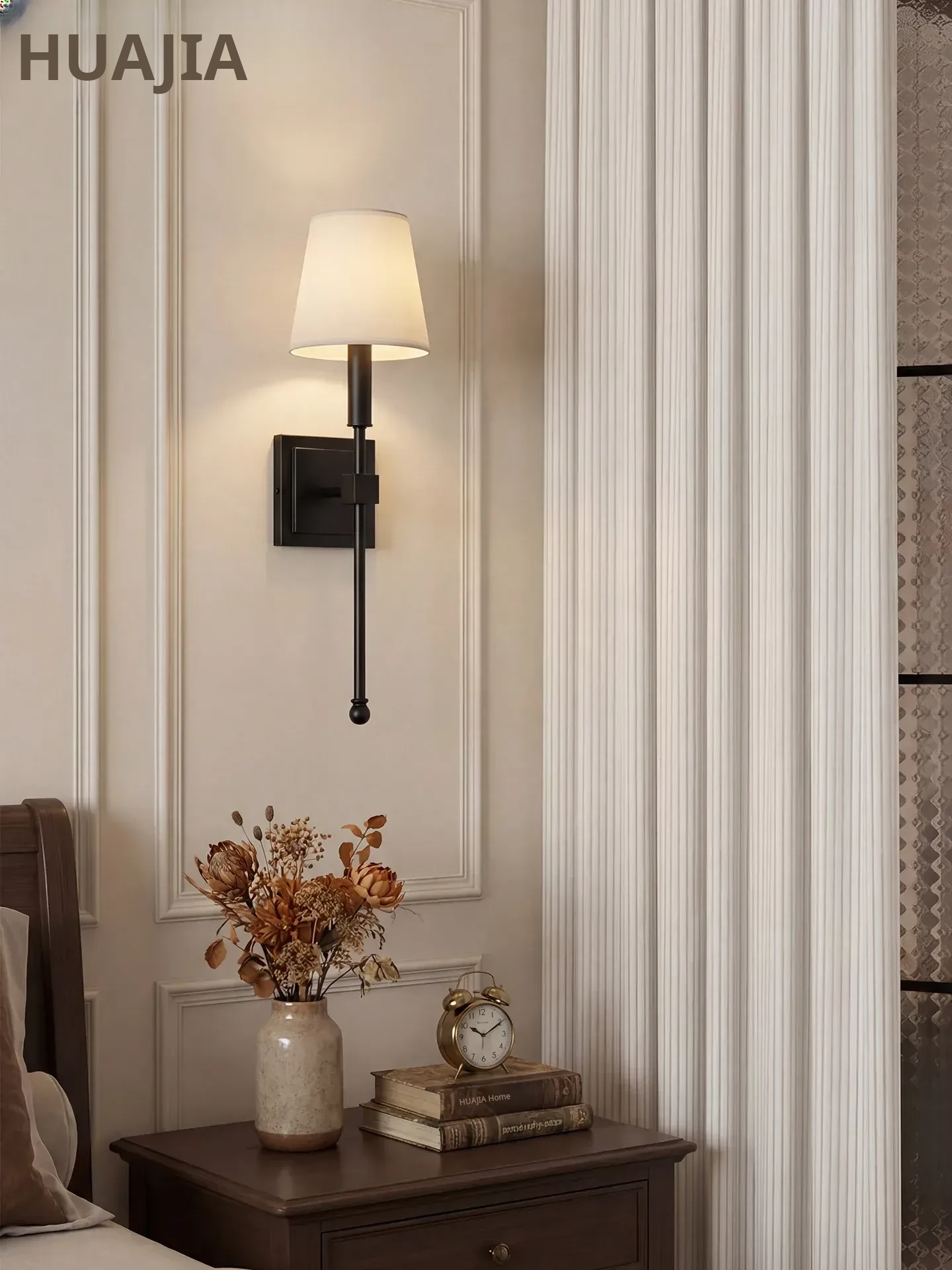 Designer French Vintage Wall Sconce - New Black Minimalist Bedroom Bedside Lamp, Retro Villa Corridor and Stair Light