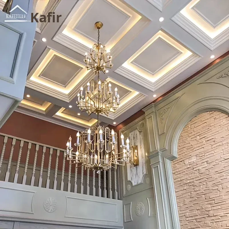 Luxurious American-style Crystal Chandelier for Villa Living Room - Elegant Loft Duplex High Ceiling Pendant Light for Upscale Apartments