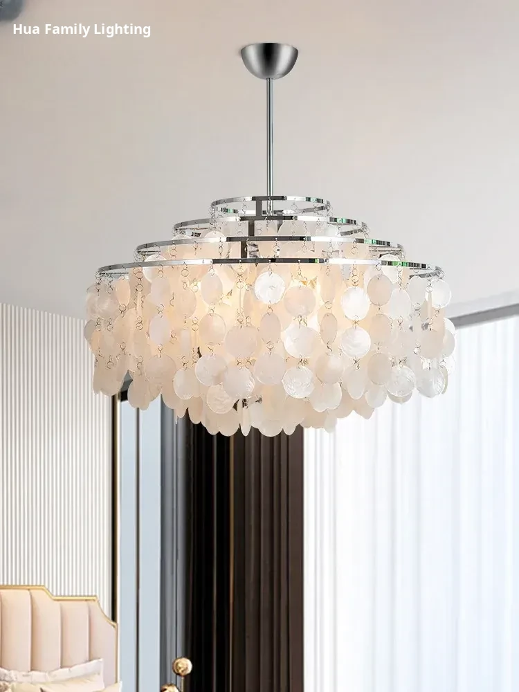 American Style Chandelier - Vintage French Rustic Pearl Shell Wind Chime Pendant Light for Bedroom, Designer Dining Room and Living Room Lighting