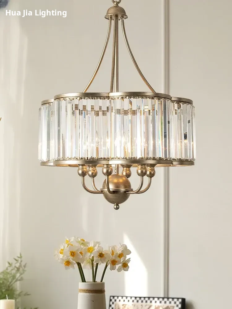 Stylish French Vintage Chandelier for Dining Rooms - Elegant Brushed Silver American Retro Crystal Ceiling Light for Bedroom and Study