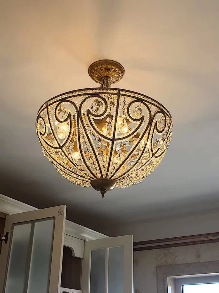 French Vintage Chandelier - Elegant Crystal Ceiling Light for Bedroom, Dining Room, Balcony, Walk-in Closet, Hallway, and Guest Room - Semi-Flush Mount Design for a Touch of Luxury