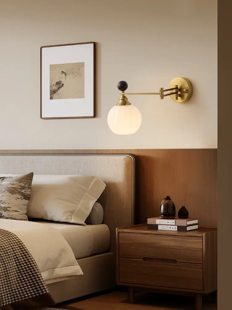 French Vintage Wall Sconce - Stylish Bedroom Bedside Light, American Retro Design for Living Room, Corridor, and Hallway - Foldable and Space-Saving Solution