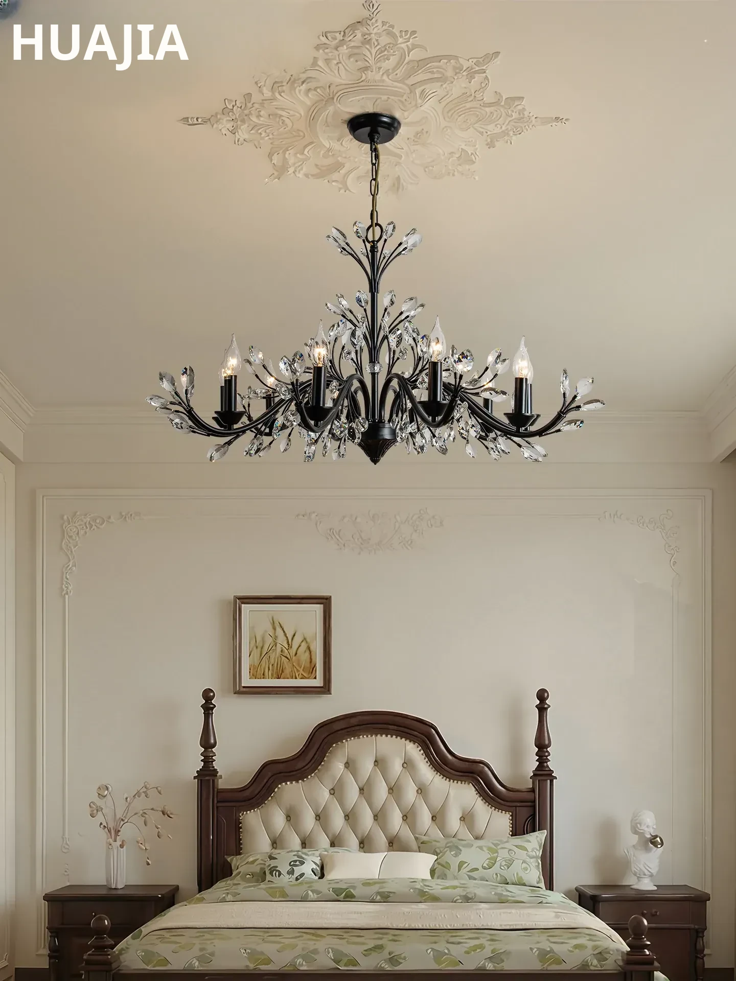 French Style Luxurious Crystal Chandelier - Elegant Black Minimalist Lighting for Living Room, Bedroom, and Dining Room Ambiance