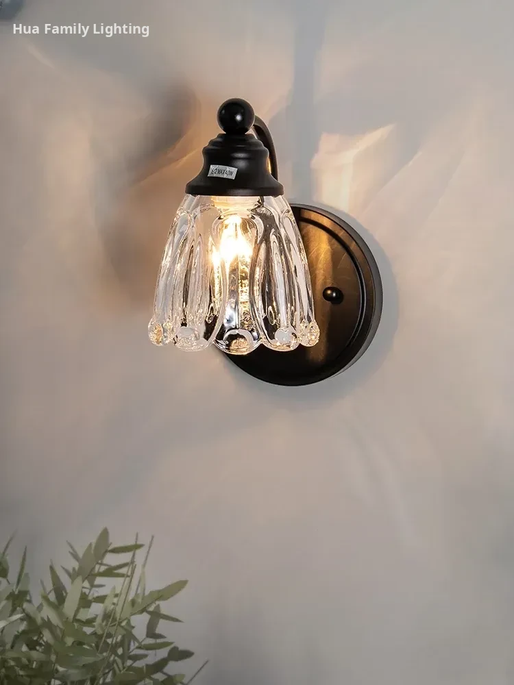 French Vintage Wall Sconce - Retro Black Bedside Lamp for Bedroom, Stylish American-Style Decor for Corridors and Balconies