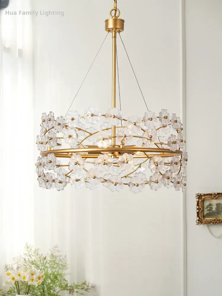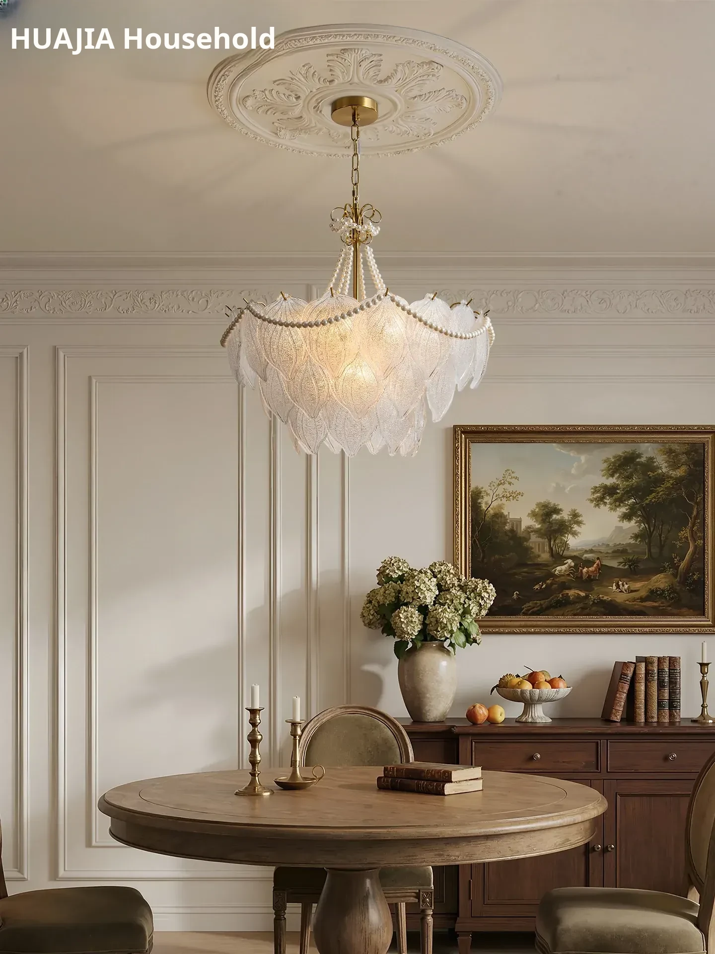 French Vintage Chandelier - Elegant Minimalist Petal Glass Design, All-Copper Lighting for Living Room, Bedroom, Dining Room, and Study - Perfect for Modern Home Decor