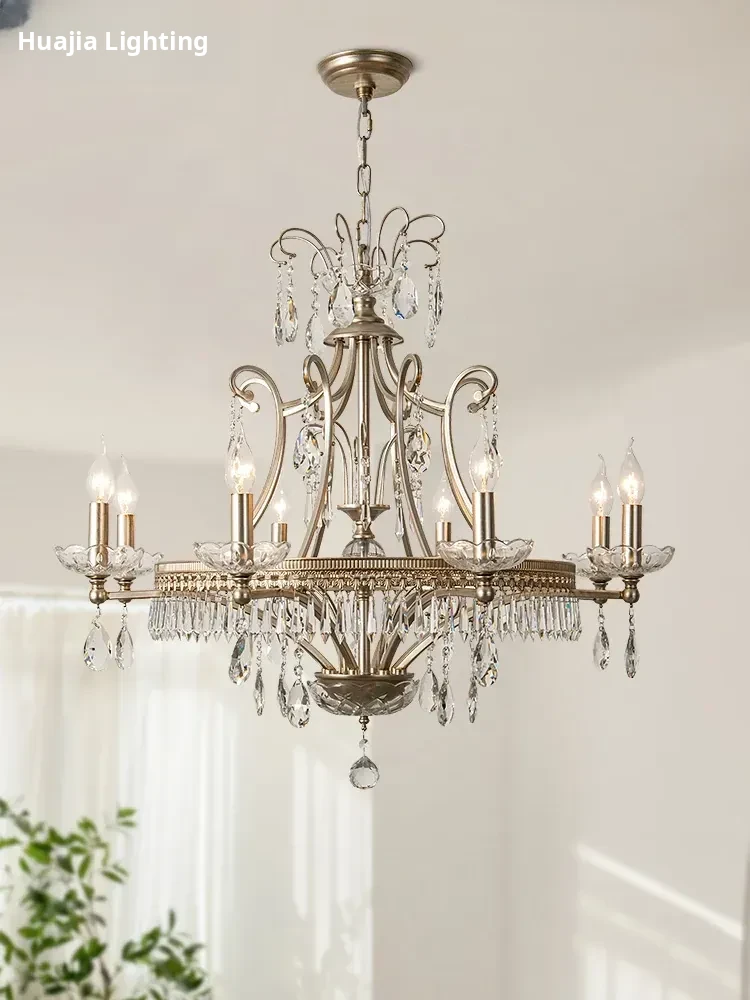 Stylish French Vintage Chandelier for Dining Rooms - Elegant Brushed Silver American Retro Crystal Ceiling Light for Bedroom and Study
