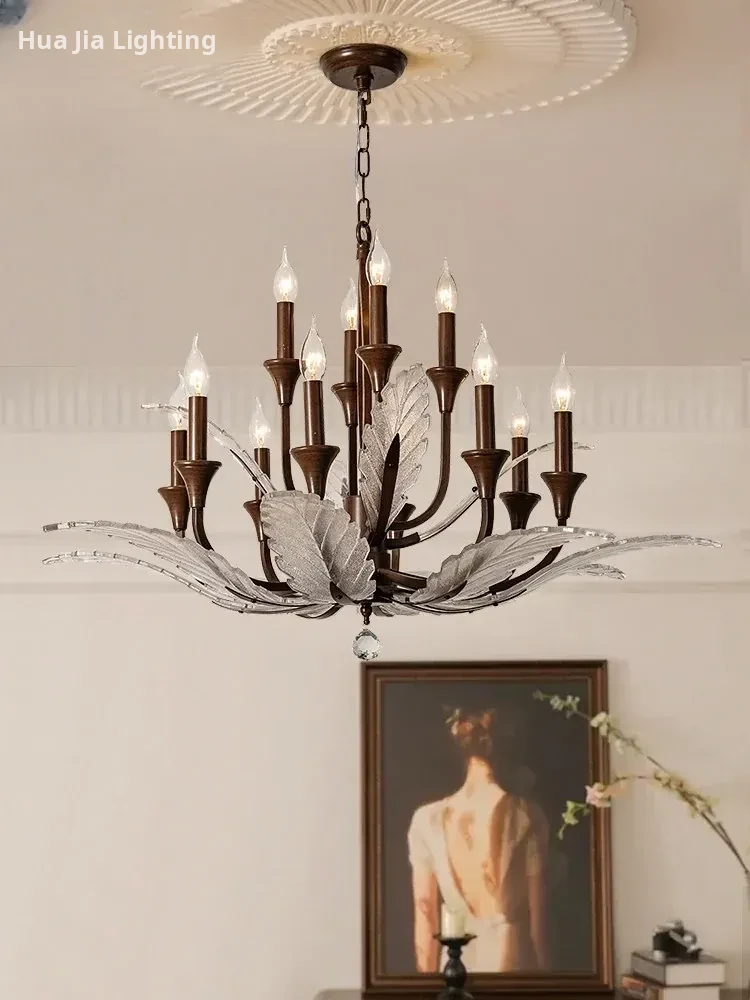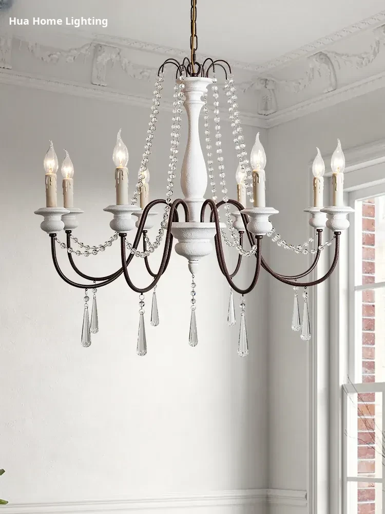 French Vintage Crystal Chandelier - Elegant Atmosphere Lighting for Dining Rooms, Rustic American-style Wooden Chandeliers for Bedrooms and Studies - Perfect Blend of Classic Charm and Modern Aesthetics