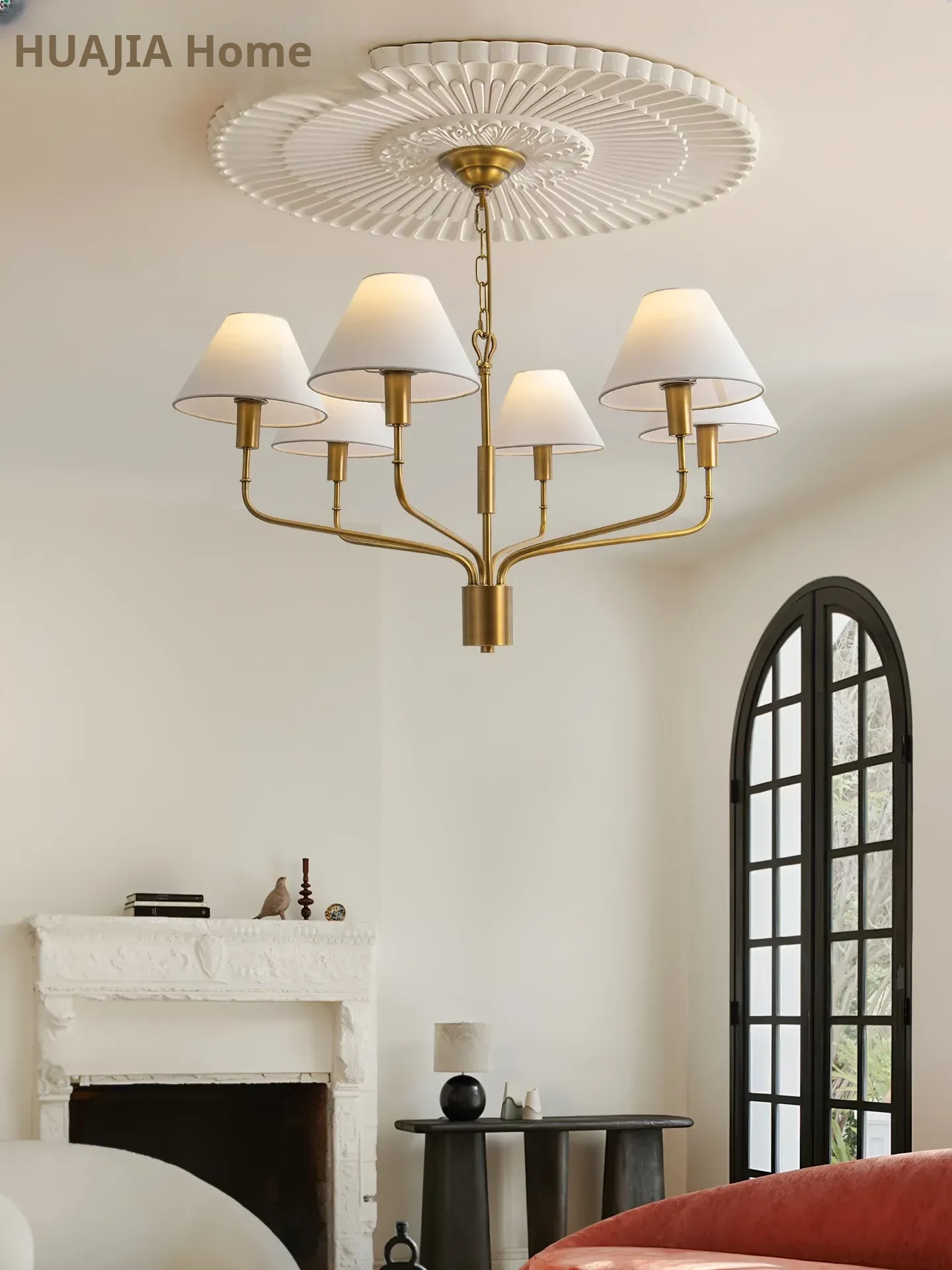 French Vintage Style Chandelier - Elegant Main Light for Bedroom, Retro American Aesthetic for Study and Dining Room, Full Copper Design for a Cozy Atmosphere