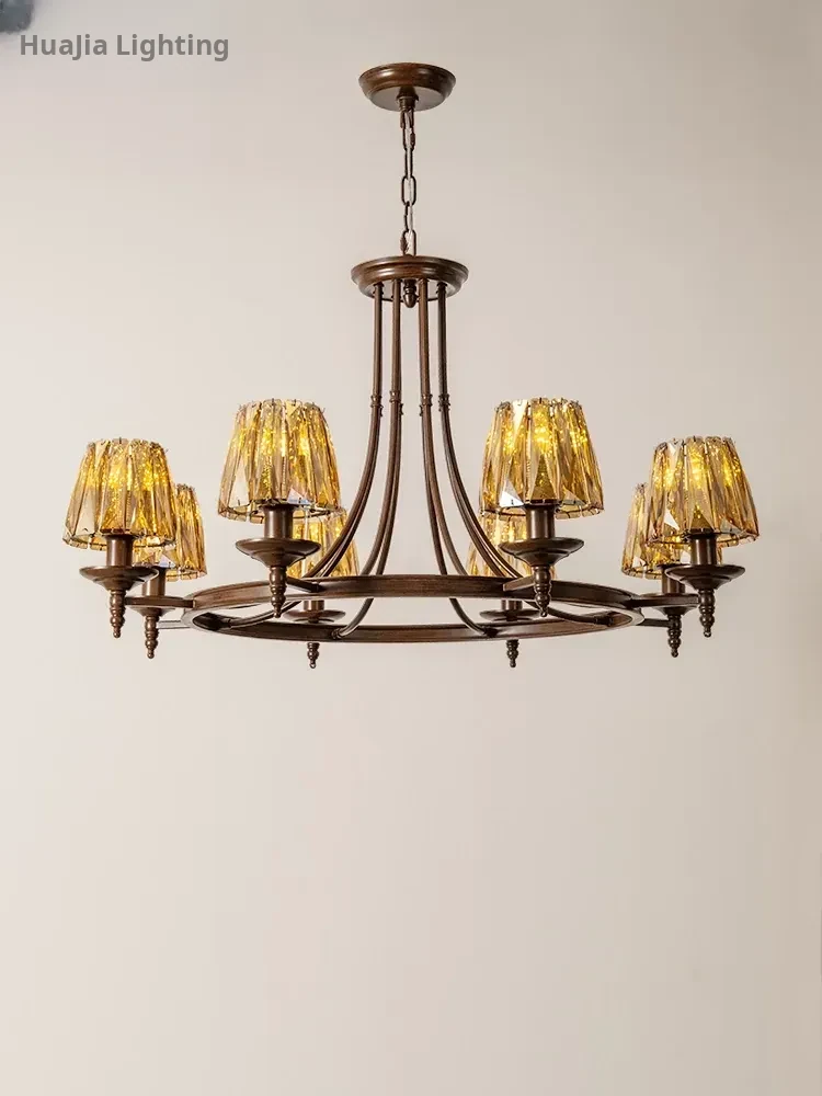 American Style Chandelier - Luxurious Vintage Walnut Crystal Pendant Light for Living Room, Dining Room, Villa, and Bedroom - Elevate Your Space with Creative Elegance