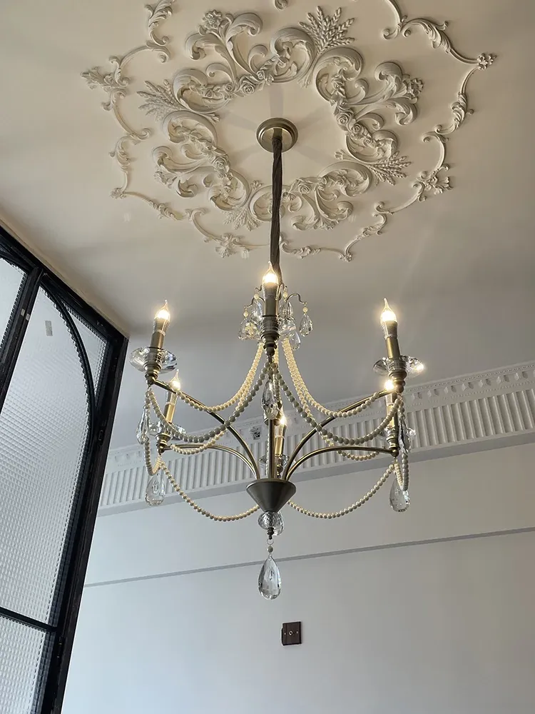 French Cream Vintage Pearl Crystal Chandelier - Elegant Lighting for Girls' Bedrooms, Master Bedrooms, Hallways, and Dining Rooms - Perfect Blend of Chic and Classic Style
