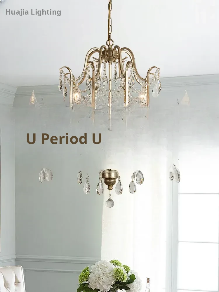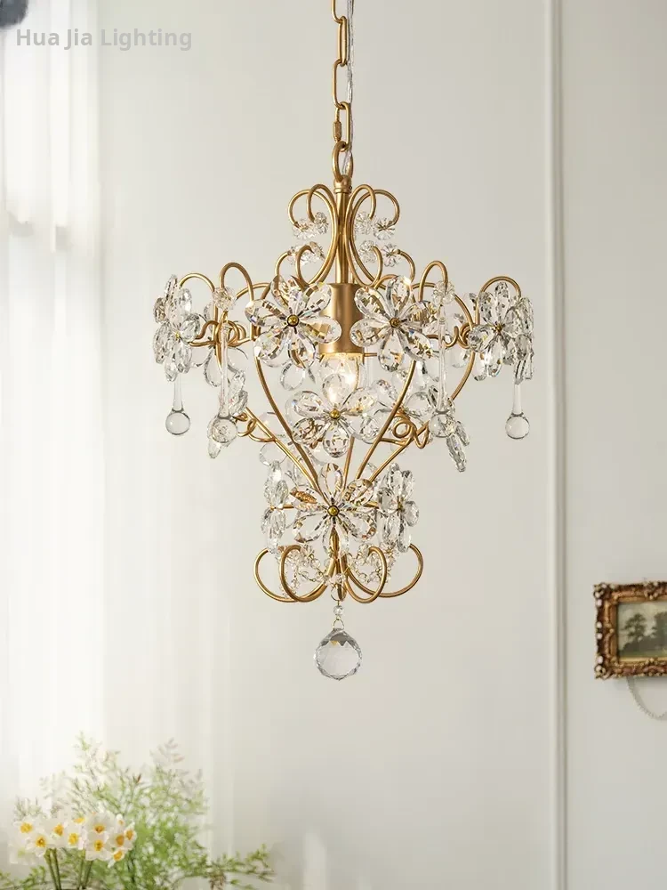 French Vintage Style Crystal Ceiling Light - Elegant American Design, Full Copper Construction, Perfect for Bedroom, Study, and Balcony. Illuminate Your Space with Luxury!