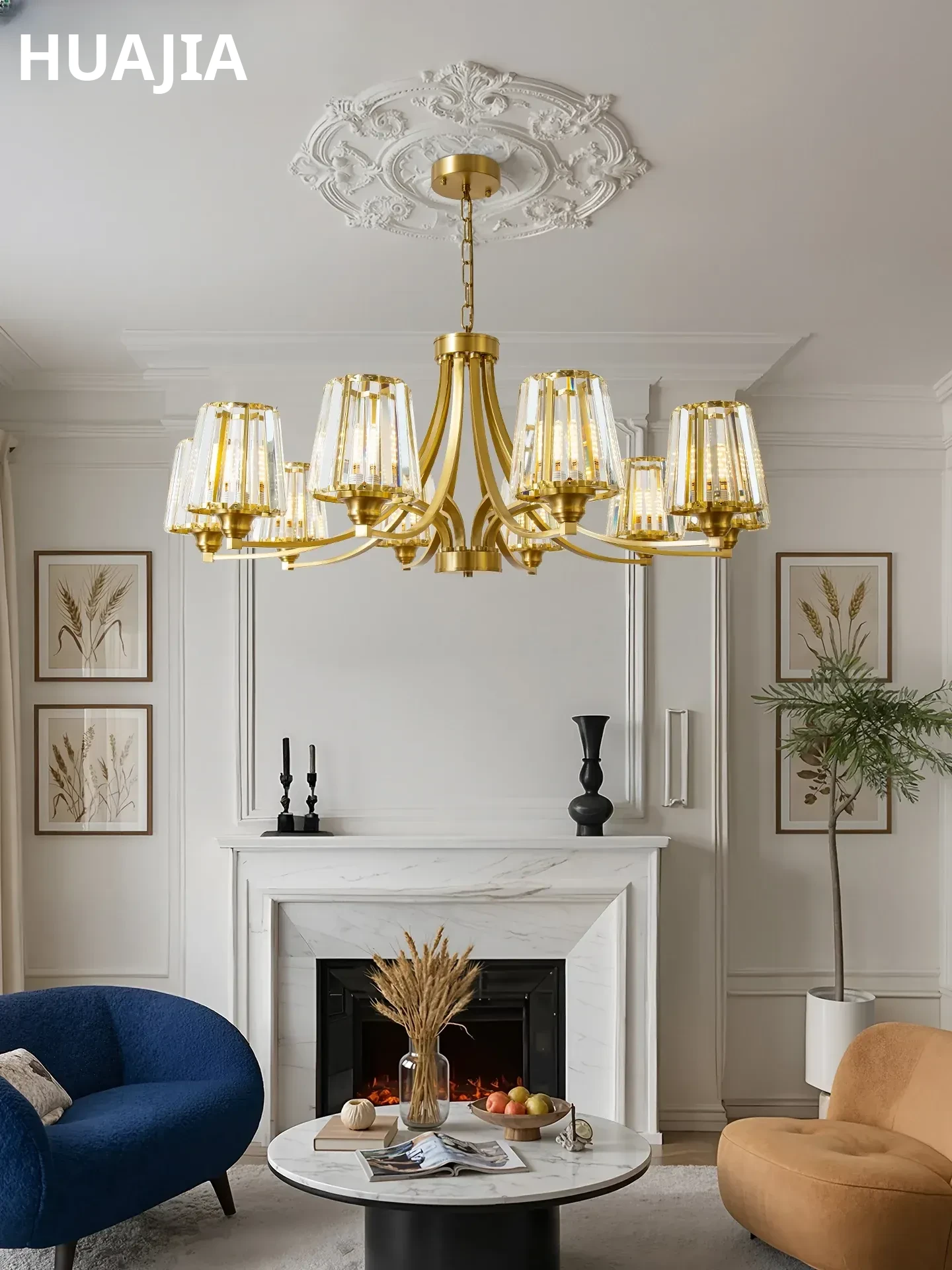 Huajia Lighting American Style Chandelier - Modern Creative Design for Living Room, Bedroom, and Dining Room - Luxurious Crystal Fixture for Elegant Spaces