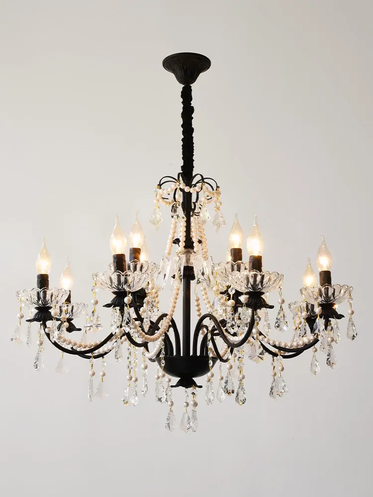 French Vintage Black Pearl Chandelier - Elegant American Retro Candle Crystal Lighting for Living Room, Bedroom, Dining Room, and Villa