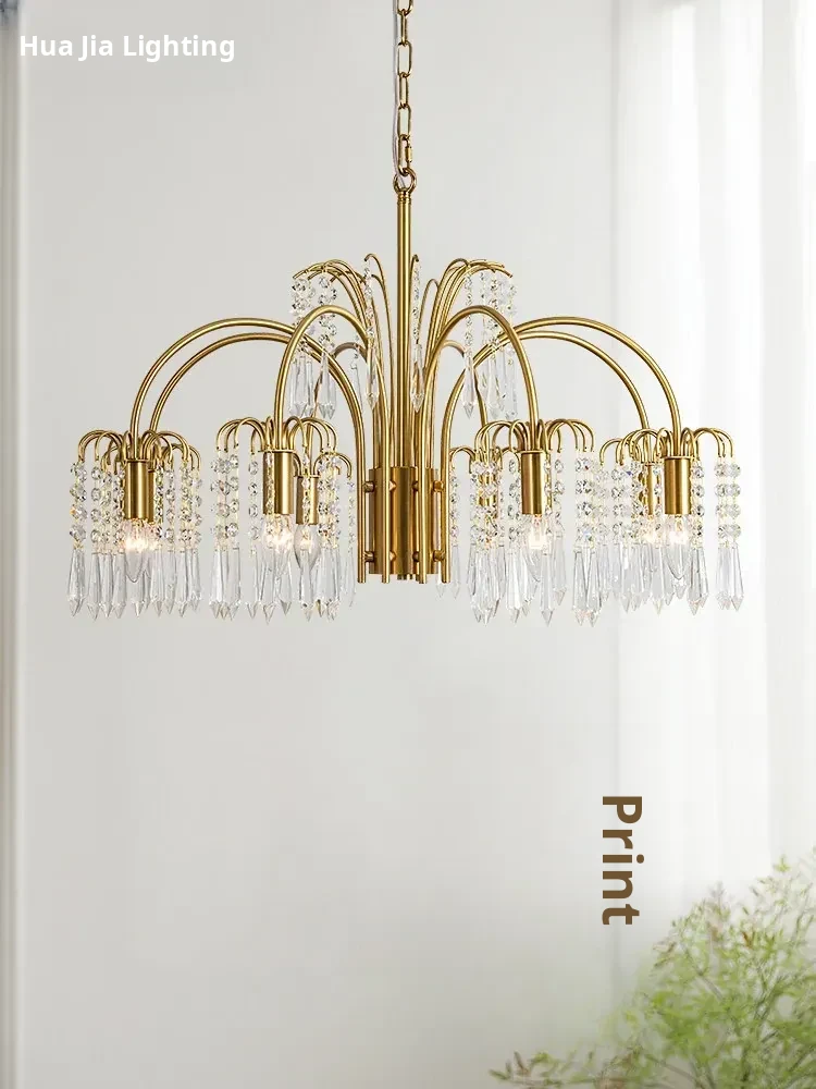 Elegant American-Style Crystal Chandelier: French-Style All-Copper Lighting for Living Room, Dining Room, and Italian Palace Bedroom, Perfect for Closet and Entrance Décor