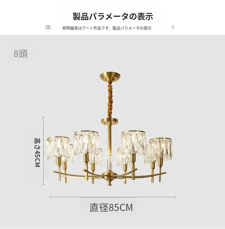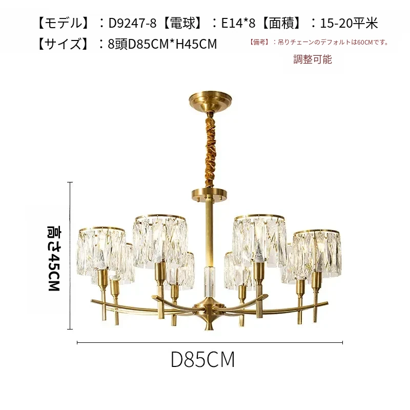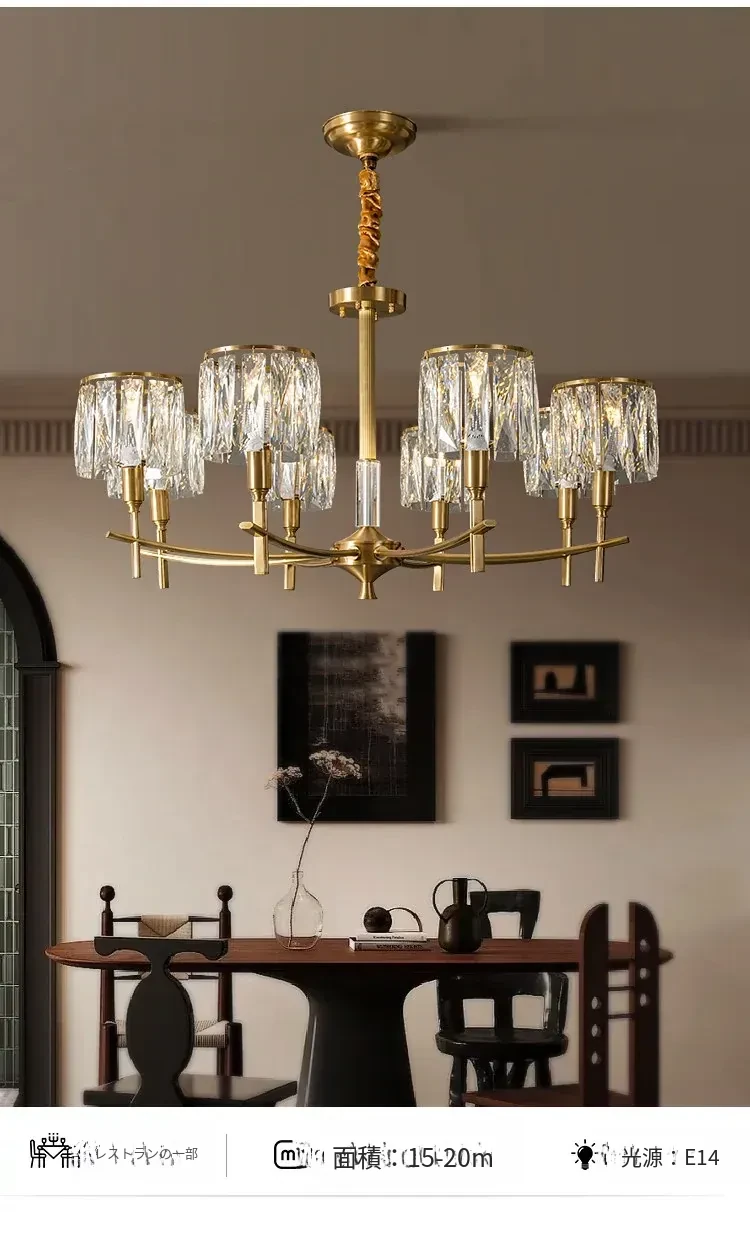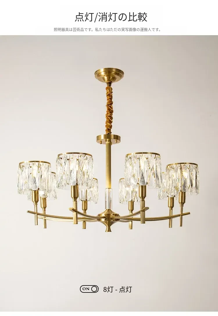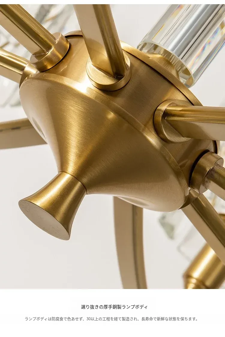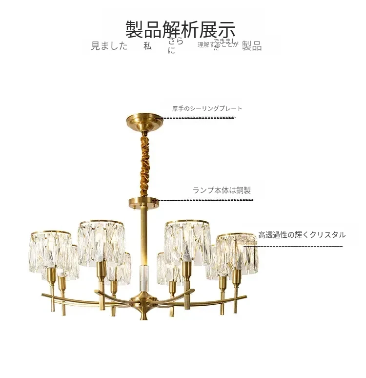 全銅製クリスタルシャンデリア - アメリカンスタイルのラグジュアリーな空間を演出!新作2024年の大人の美しさを引き立てる、リビング、寝室、ダイニングに最適なフレンチヴィラ風の照明。