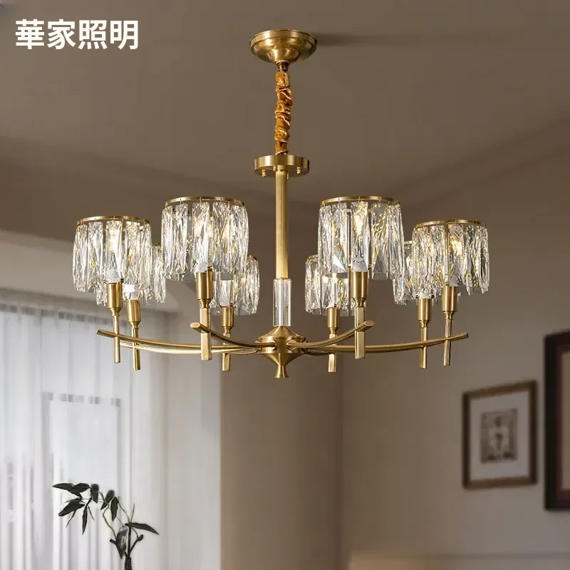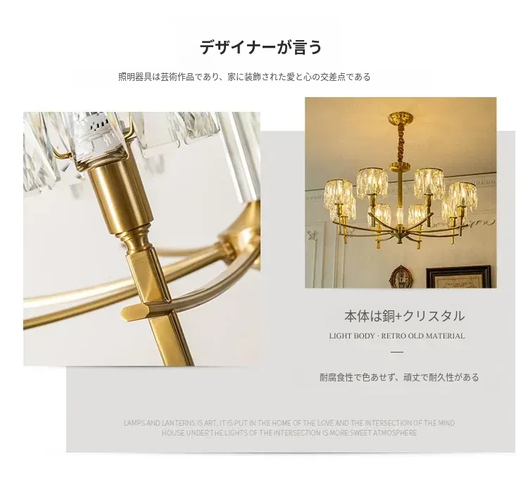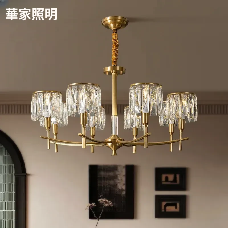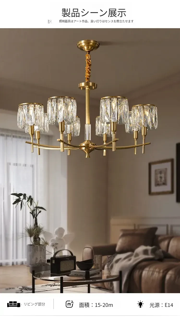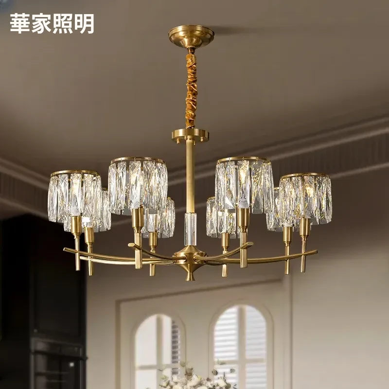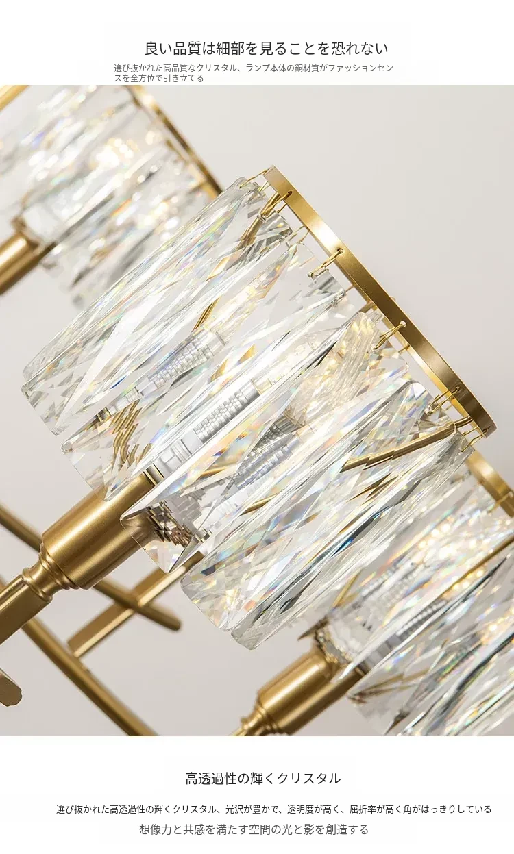 全銅製クリスタルシャンデリア - アメリカンスタイルのラグジュアリーな空間を演出!新作2024年の大人の美しさを引き立てる、リビング、寝室、ダイニングに最適なフレンチヴィラ風の照明。