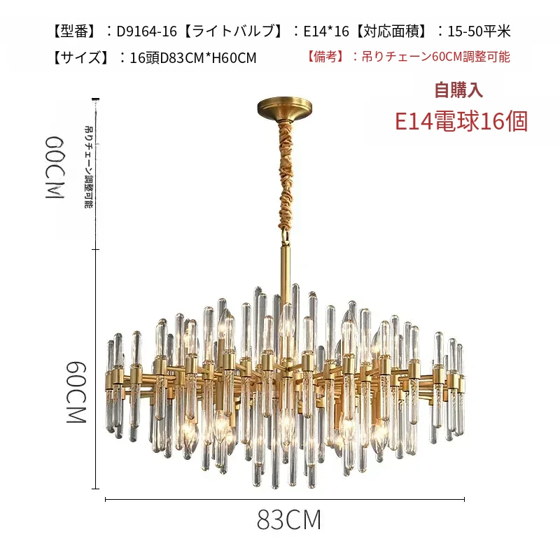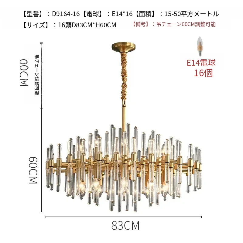 D83*H60CM16灯頭帶7瓦暖光 銅製