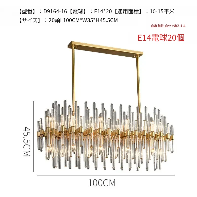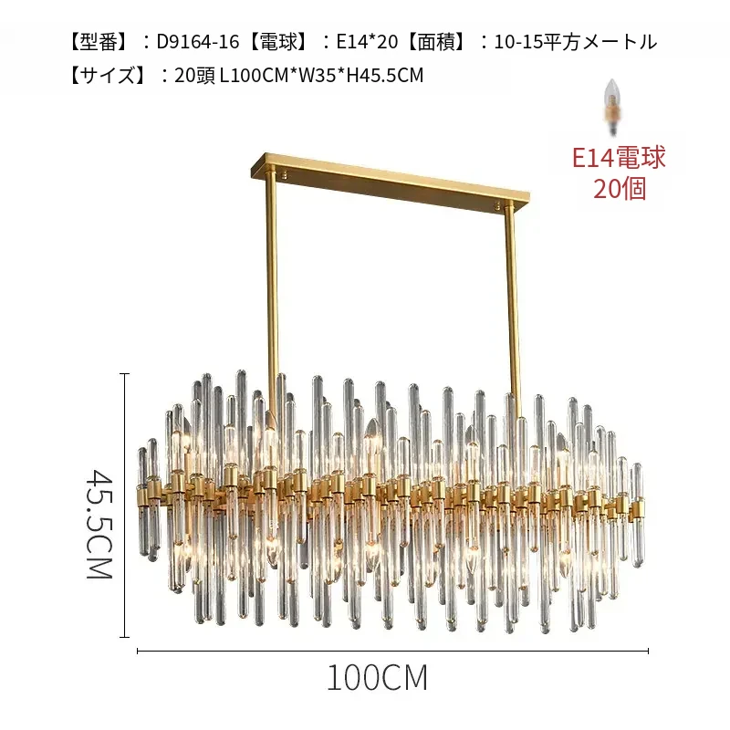 L100*H45.5CM20灯頭帶7瓦暖光 長方形 銅製