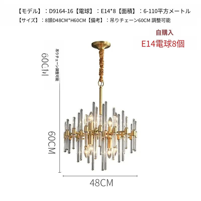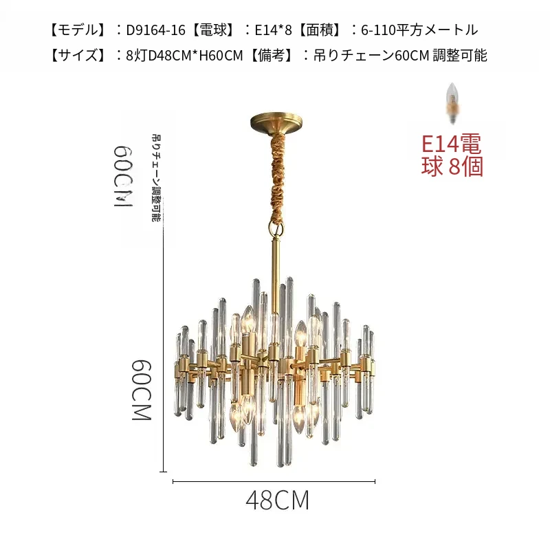 D48*H60CM8灯頭帶7瓦暖光 銅製