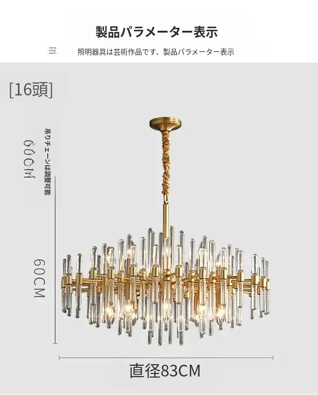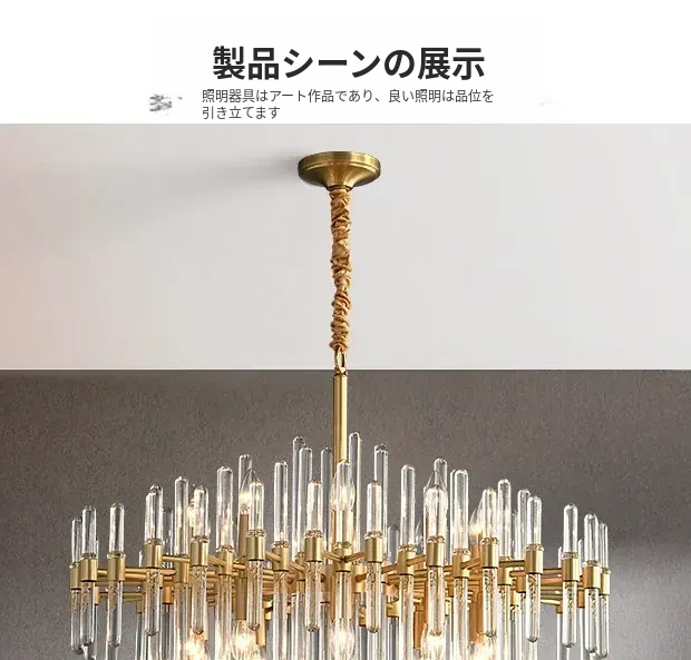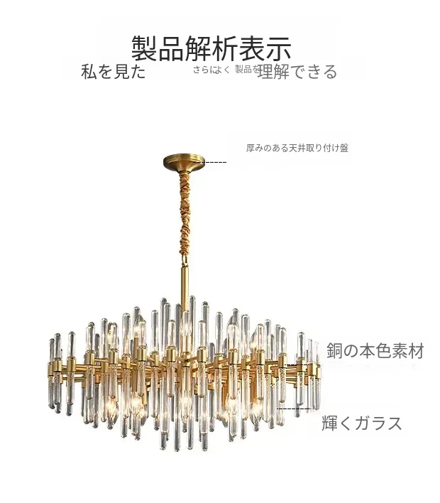 全銅製のモダンラグジュアリーシャンデリア - 北欧クリスタルが煌めく、リビングや寝室にぴったりの高級感あふれる照明。スタイリッシュなモデルルームやダイニングに最適!