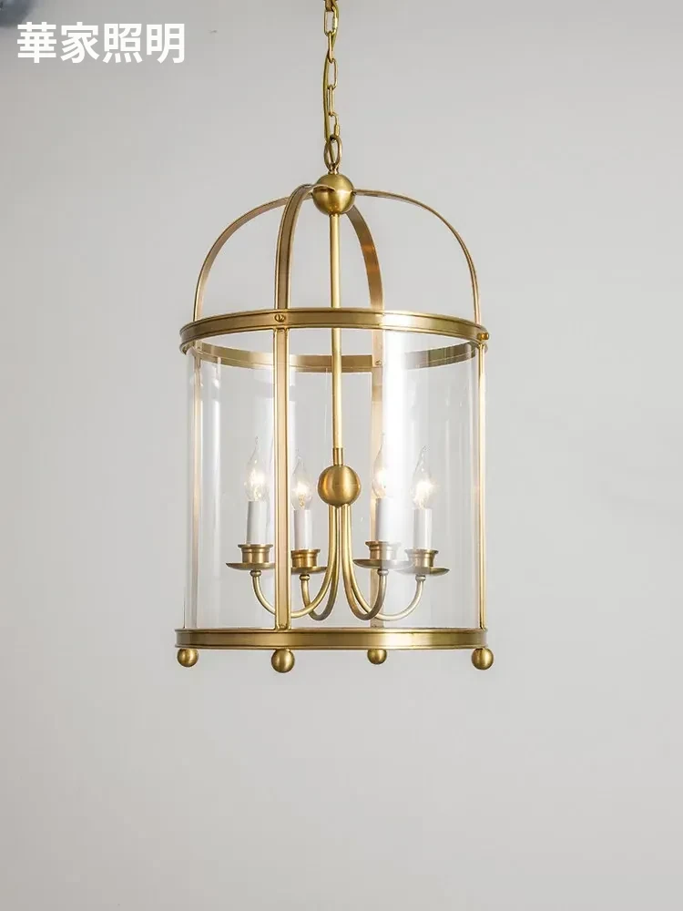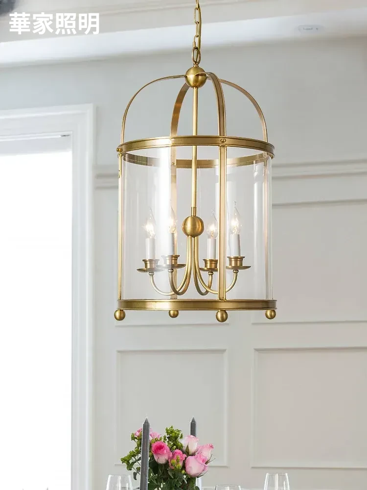 全銅製のレトロアメリカンスタイルのダイニングライト - ヴィラにぴったりなシンプルで洗練されたベッドルームや書斎、アイランドテーブル用の吊り下げ照明、階段スペースにも最適!