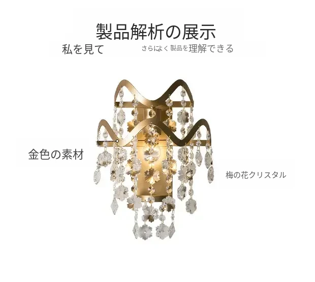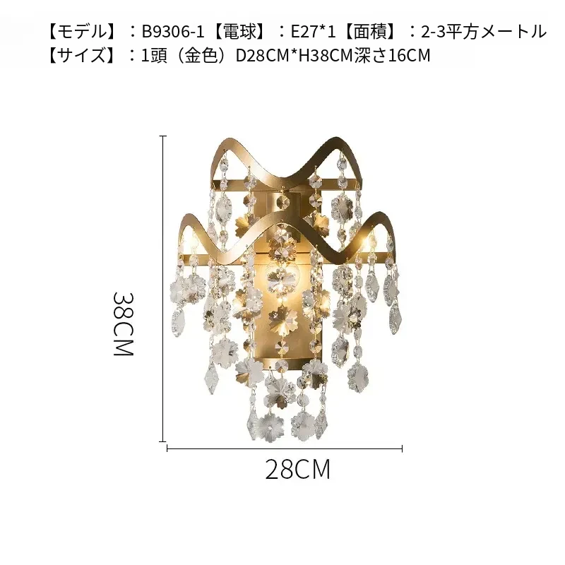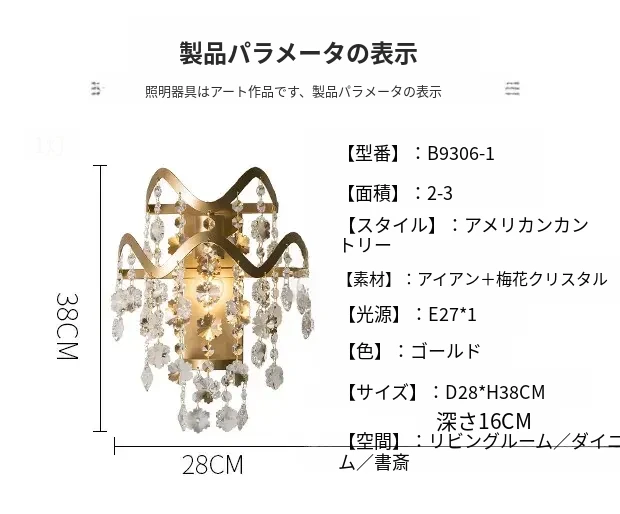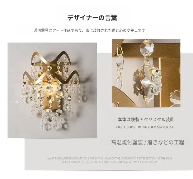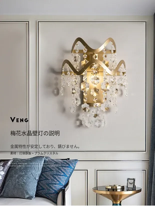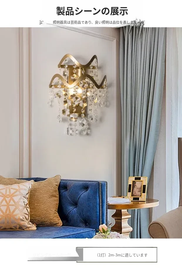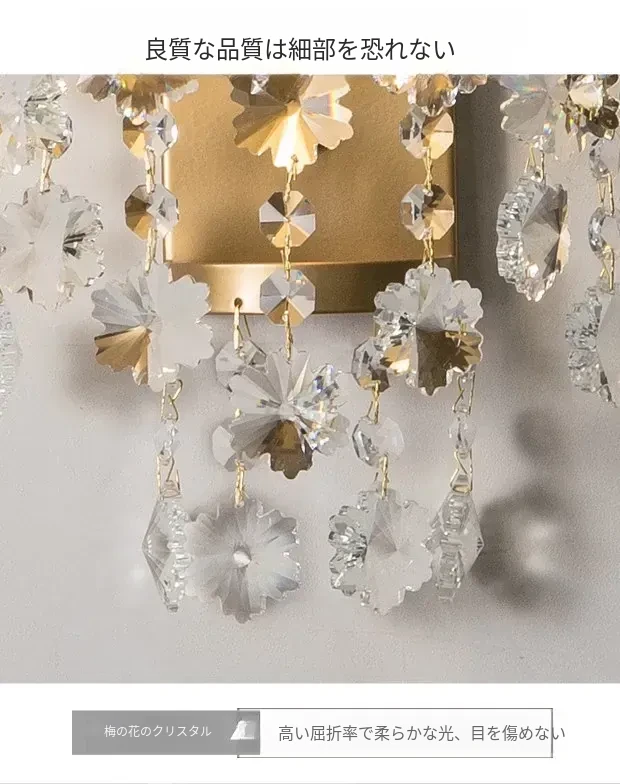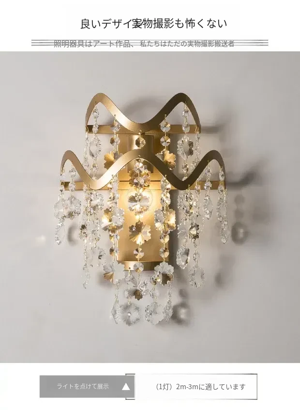 アメリカンスタイルのクリスタルウォールライト - ラグジュアリーでシンプルなデザイン、リビングやテレビバックウォールに最適!モダンな個性を引き立てる寝室のベッドサイドランプとしてもおすすめです。