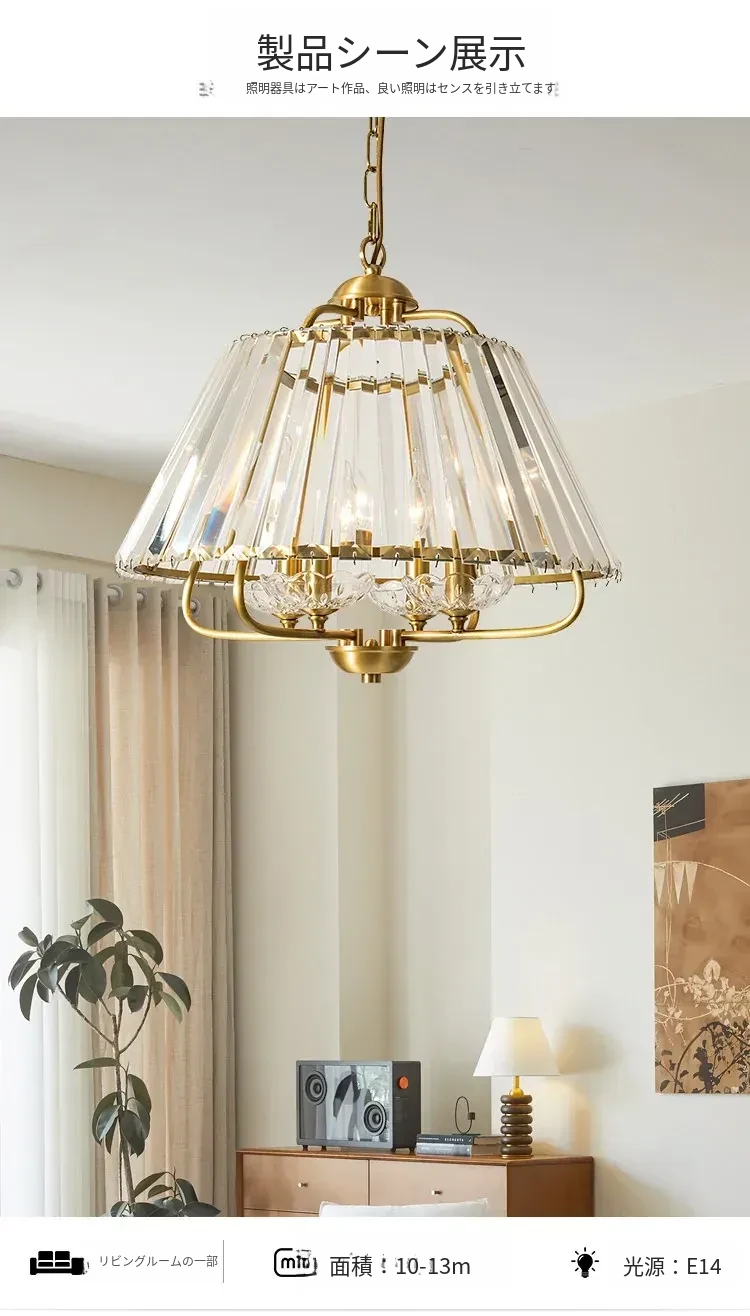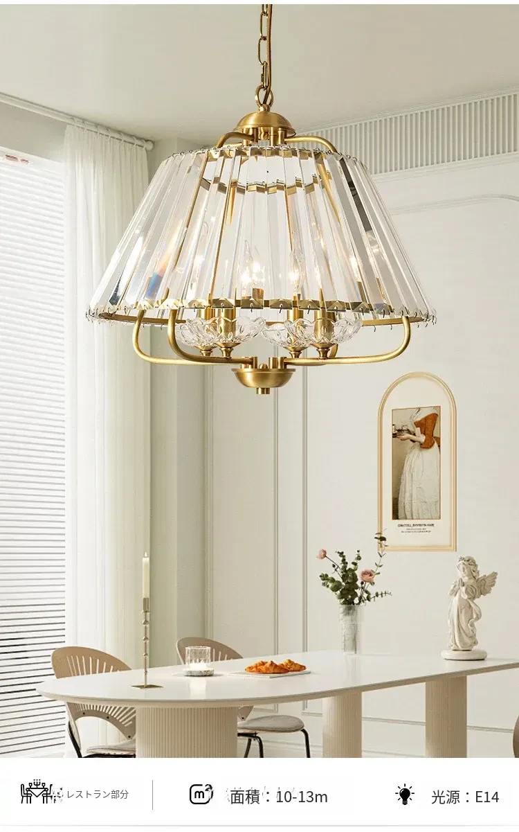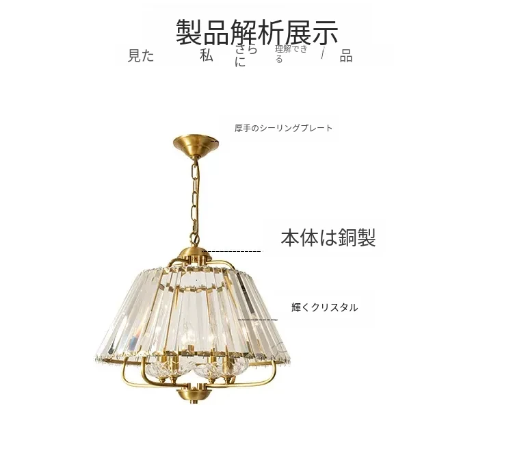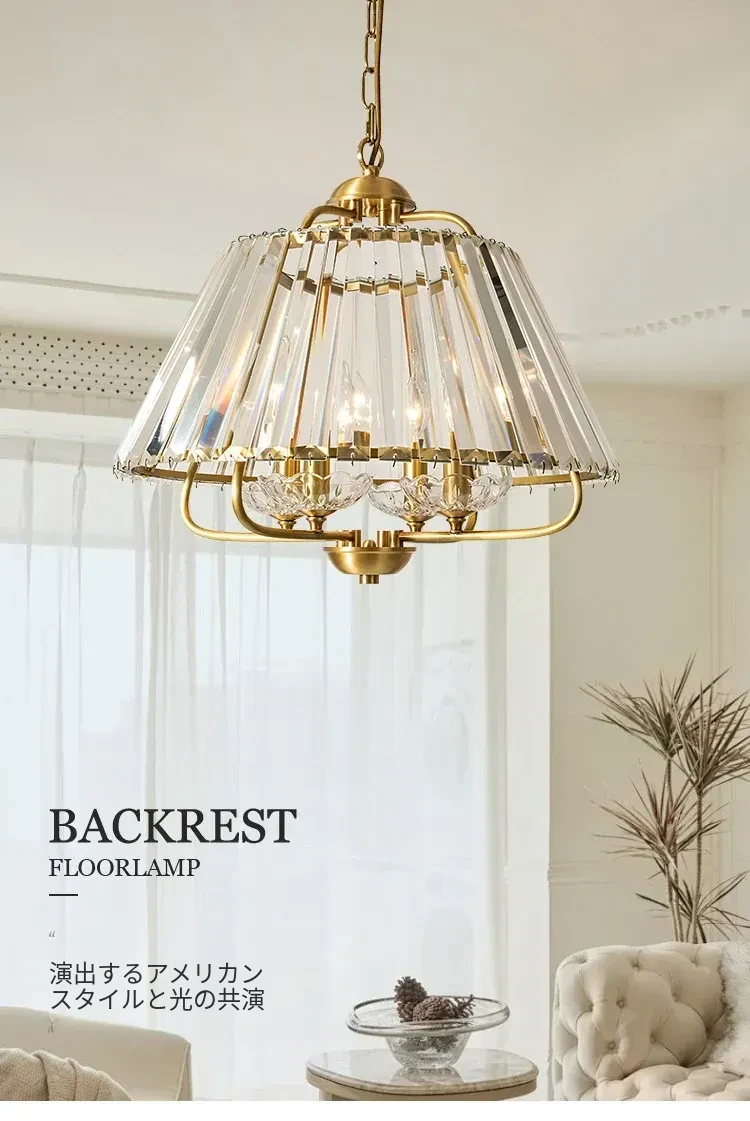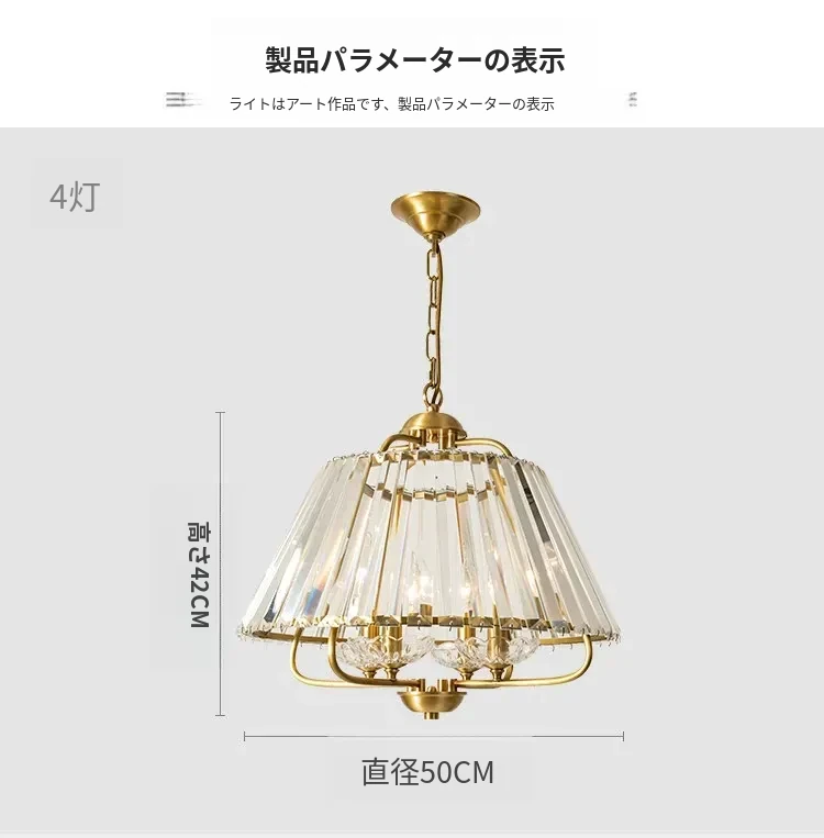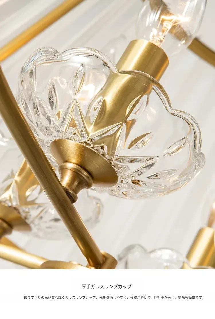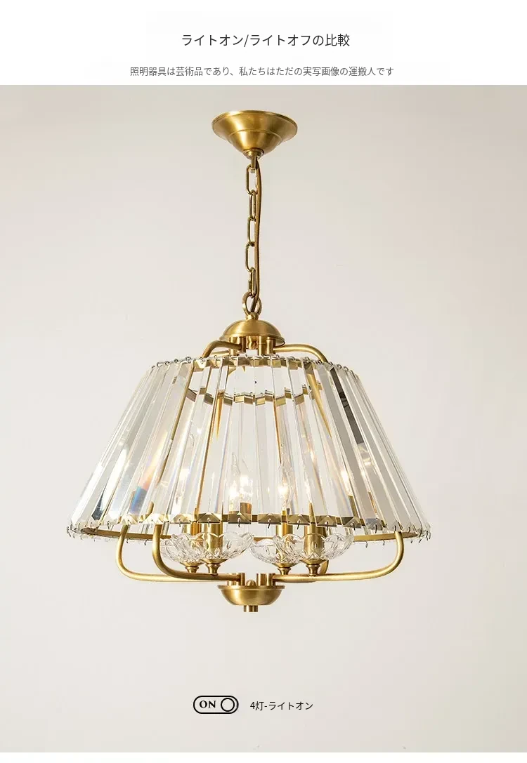 アメリカンラグジュアリーのシンプルなデザイン、全銅製クリスタルシャンデリア。高級感溢れる寝室や書斎、ダイニングにぴったりのスタイリッシュな照明器具。