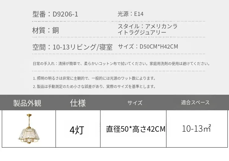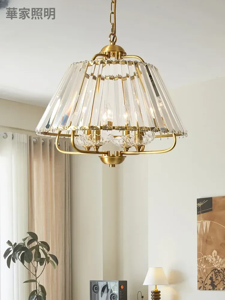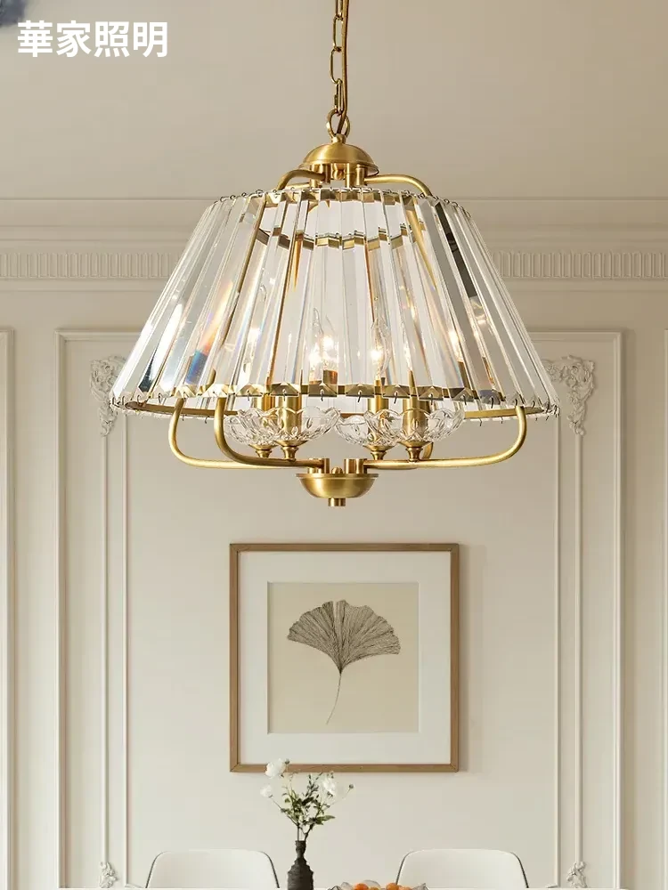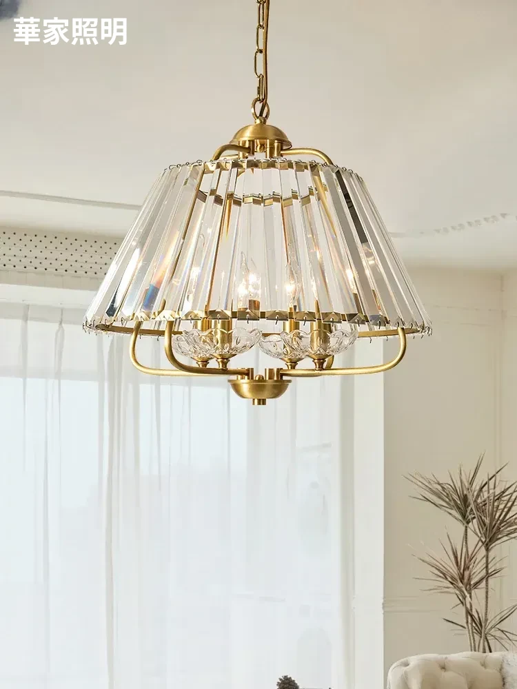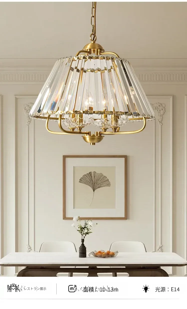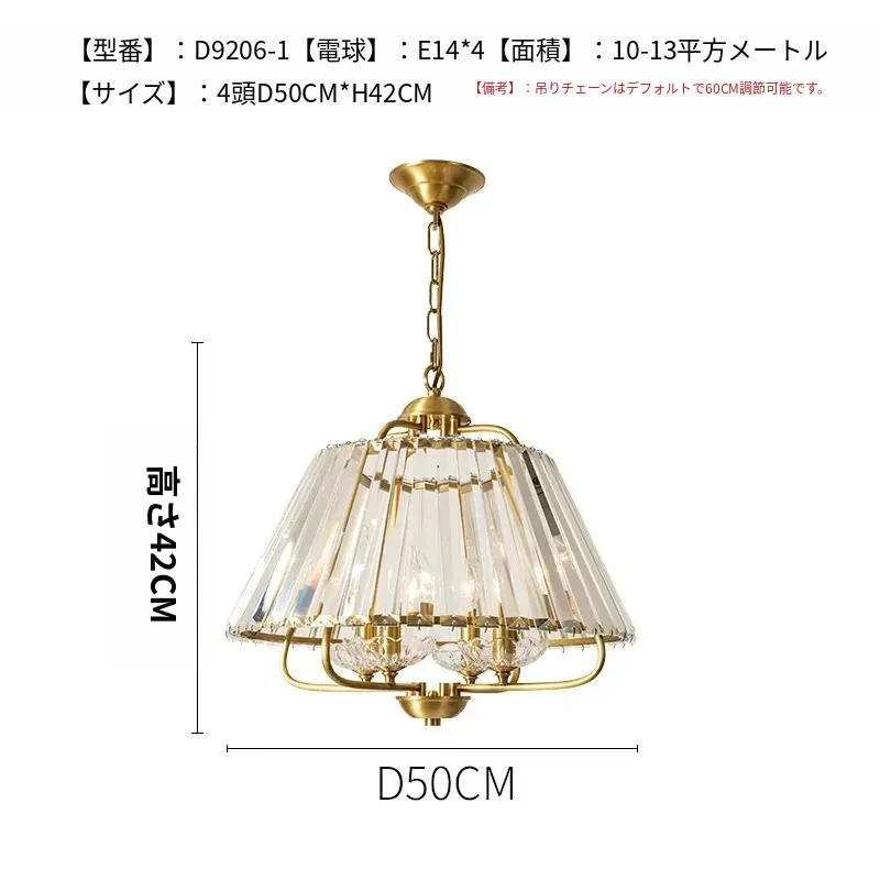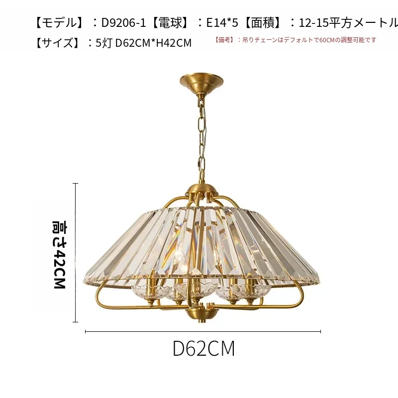 アメリカンラグジュアリーのシンプルなデザイン、全銅製クリスタルシャンデリア。高級感溢れる寝室や書斎、ダイニングにぴったりのスタイリッシュな照明器具。