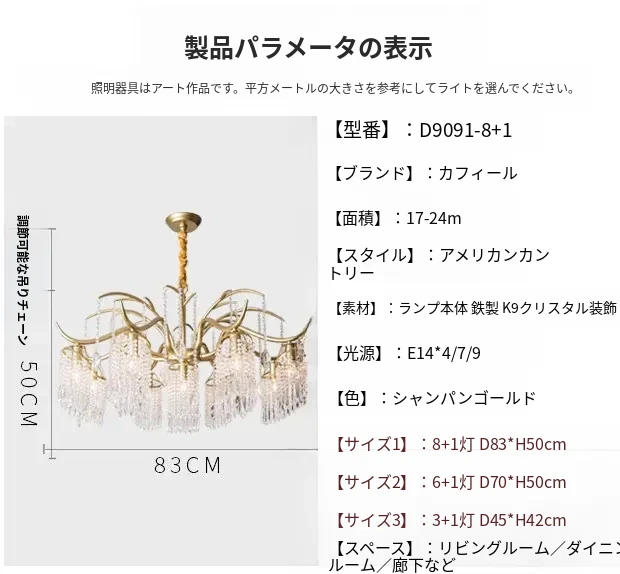 アメリカンスタイルのリビング用シャンデリア・ダイニング用ライト|カントリー風クリエイティブアート・個性的なラグジュアリー照明|寝室にぴったりなフレンチクリスタルライトで、あなたの空間を華やかに演出します!