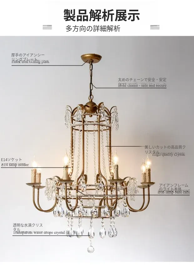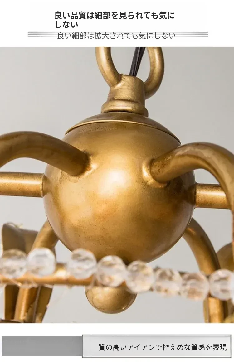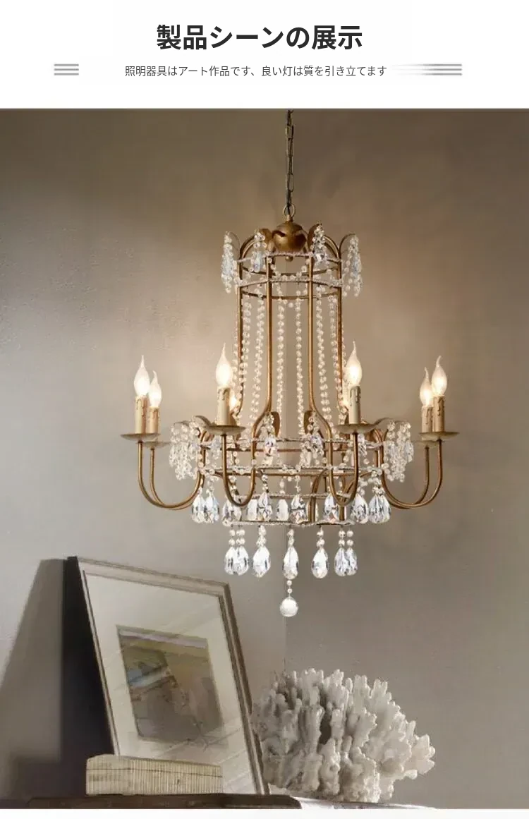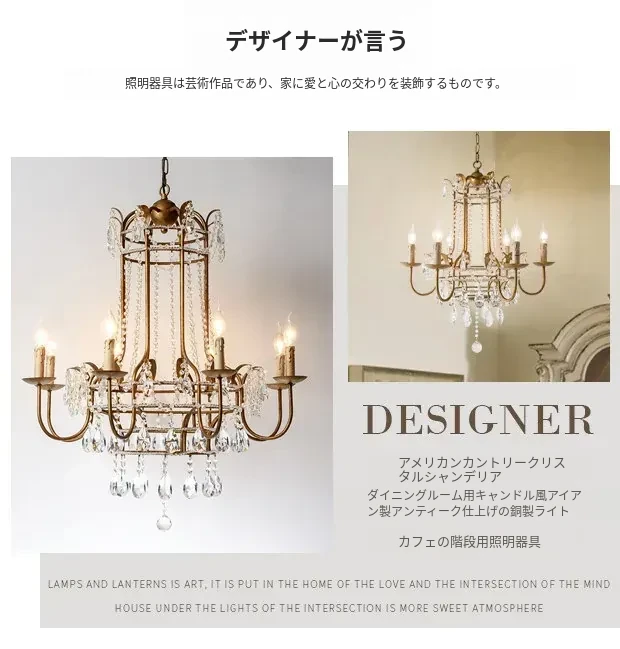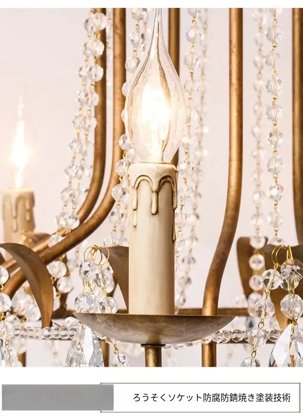 アメリカンスタイルのシャンデリア!リビングやダイニングにぴったりの豪華なアイron製キャンドル&クリスタル照明。二階建ての別荘やアパートの吹き抜けに最適。階段スペースを華やかに彩る一品です!
