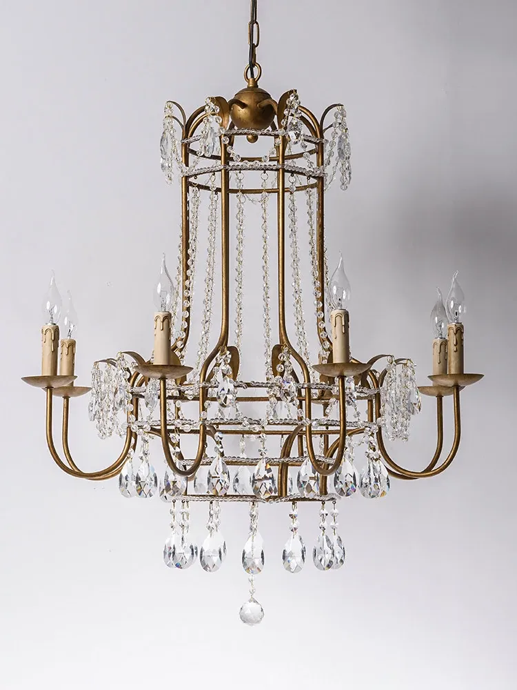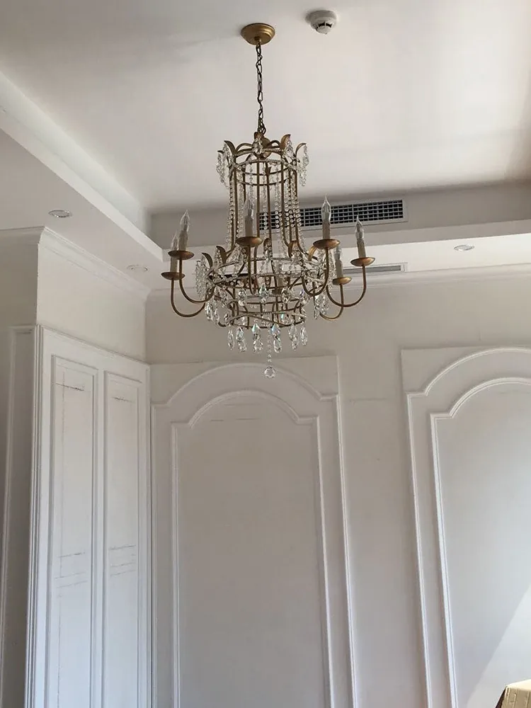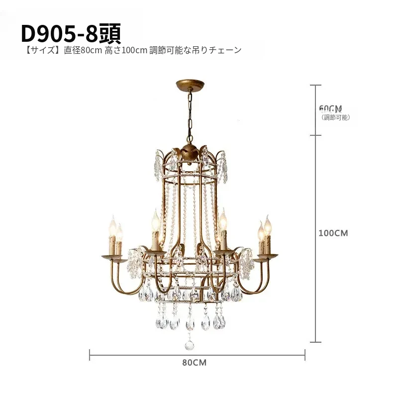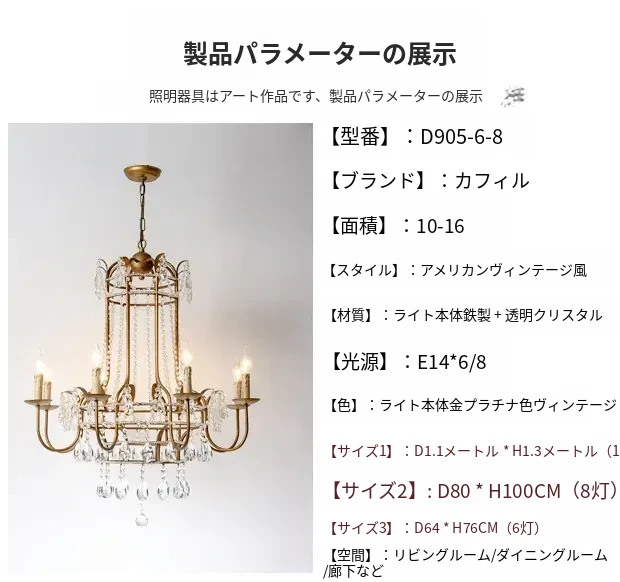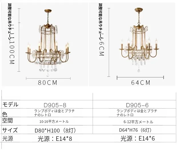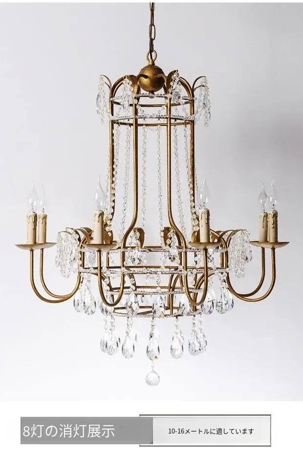 アメリカンスタイルのシャンデリア!リビングやダイニングにぴったりの豪華なアイron製キャンドル&クリスタル照明。二階建ての別荘やアパートの吹き抜けに最適。階段スペースを華やかに彩る一品です!