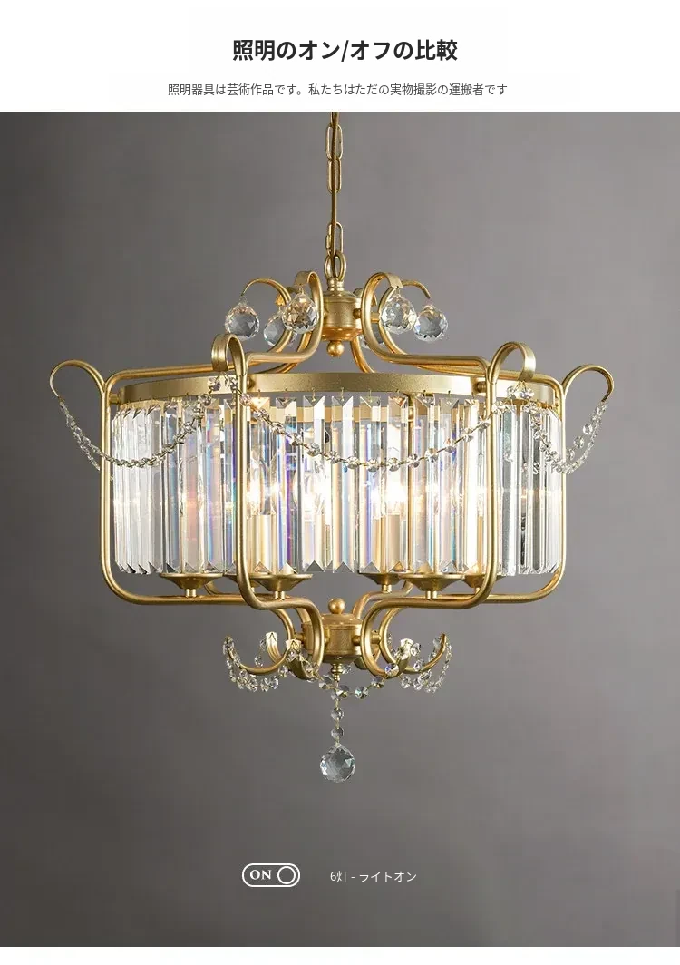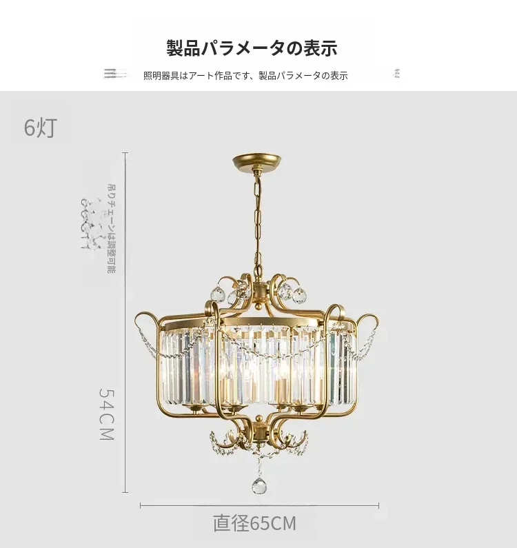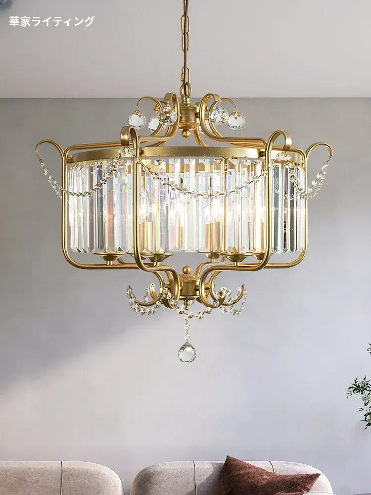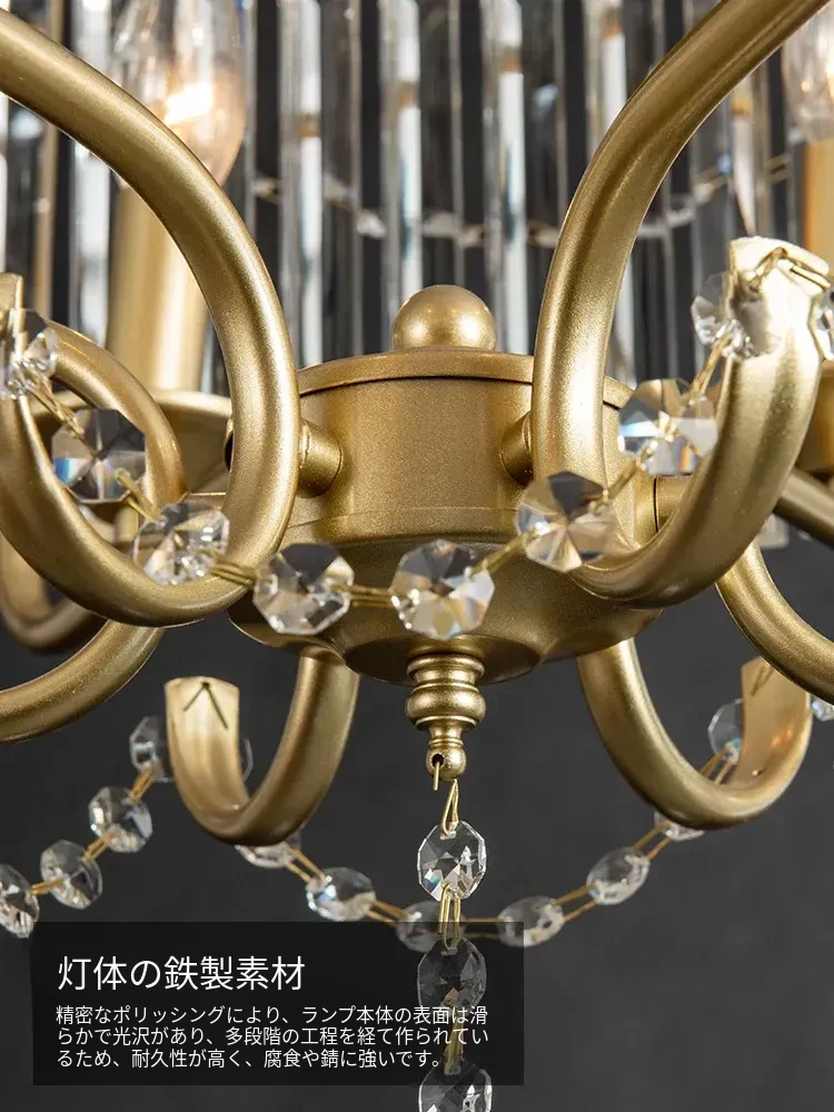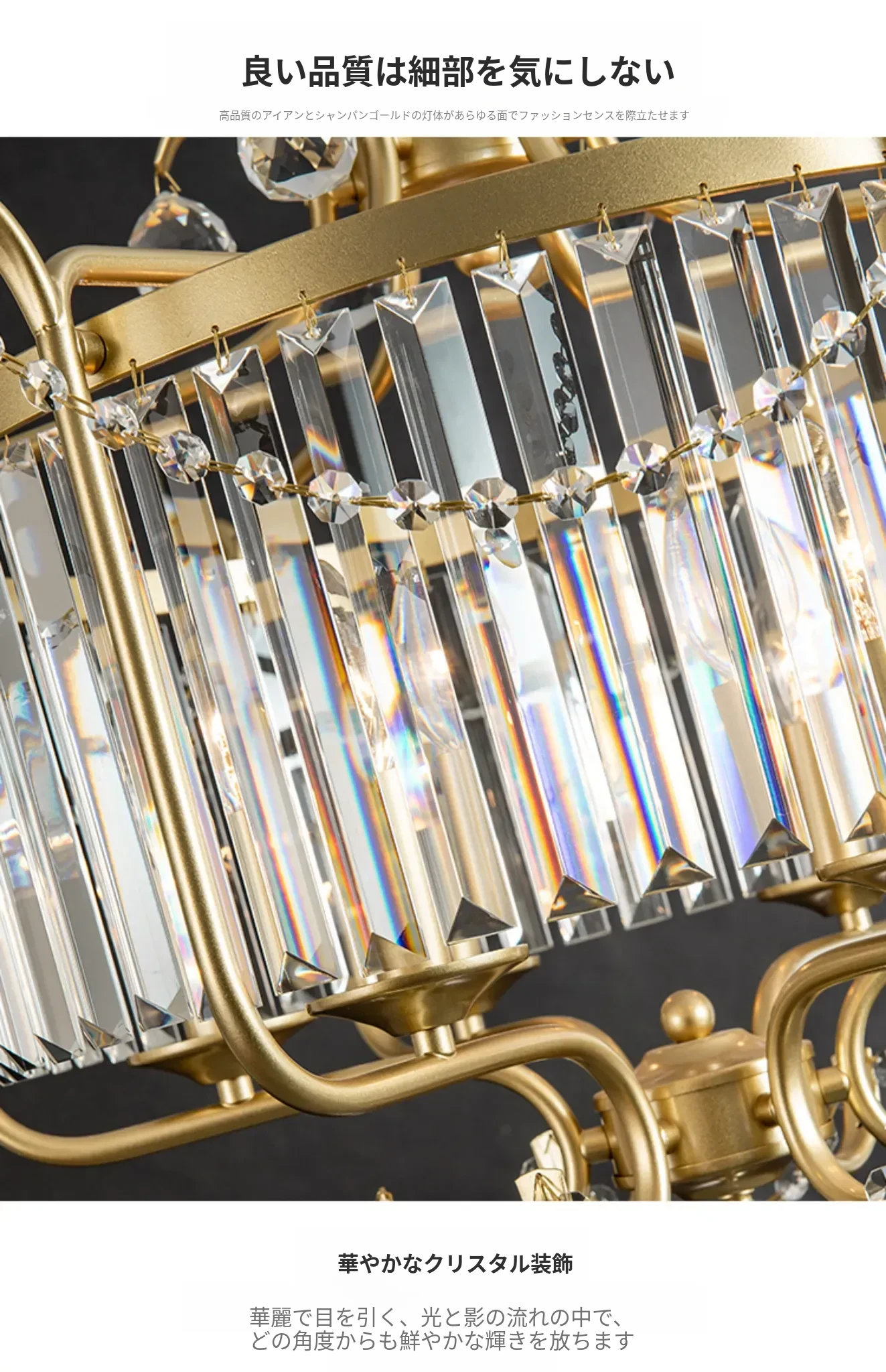 アメリカンスタイルのシャンデリア、リビングやダイニングにぴったりなラグジュアリーなクリスタルライト。シンプルで洗練されたデザインが魅力の高級インテリア照明。書斎やベッドルームにも最適な装飾灯具です。