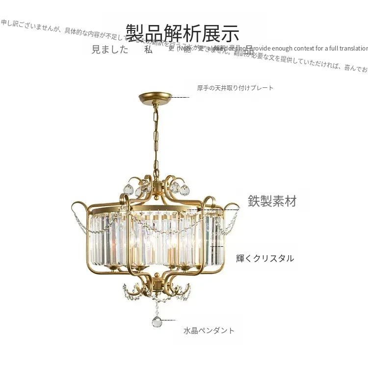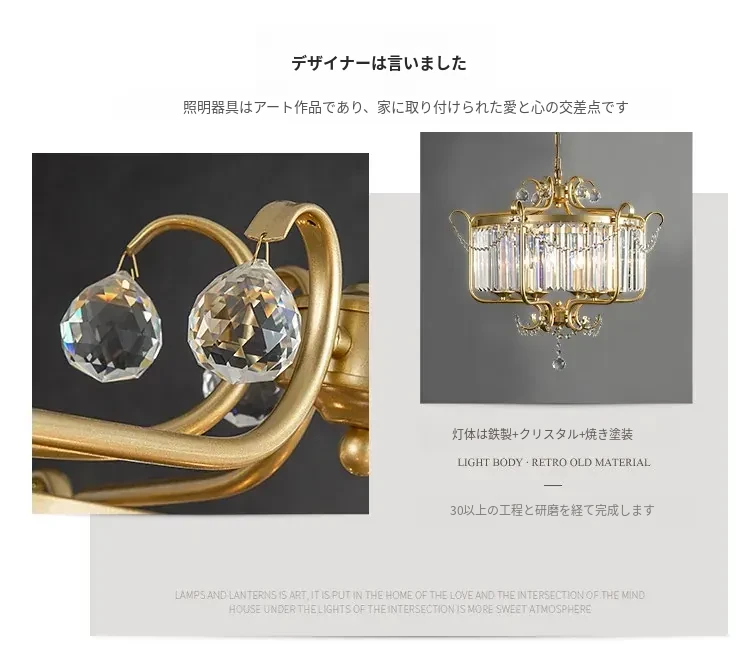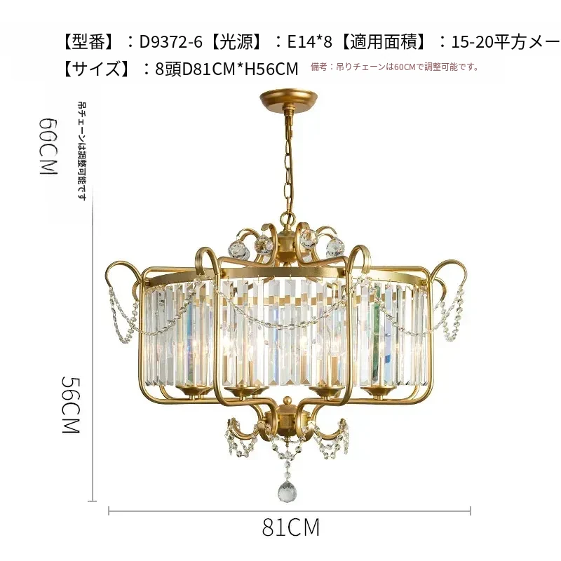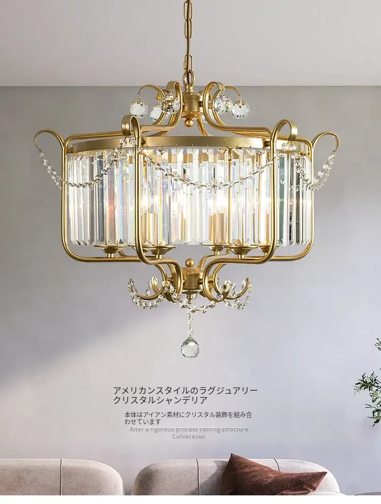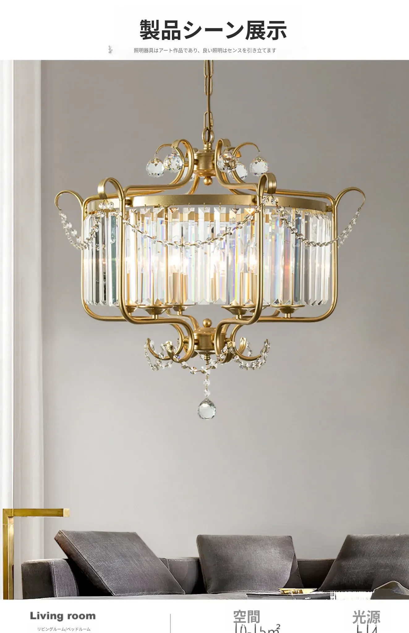 アメリカンスタイルのシャンデリア、リビングやダイニングにぴったりなラグジュアリーなクリスタルライト。シンプルで洗練されたデザインが魅力の高級インテリア照明。書斎やベッドルームにも最適な装飾灯具です。