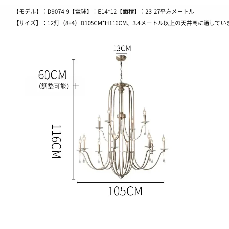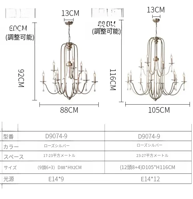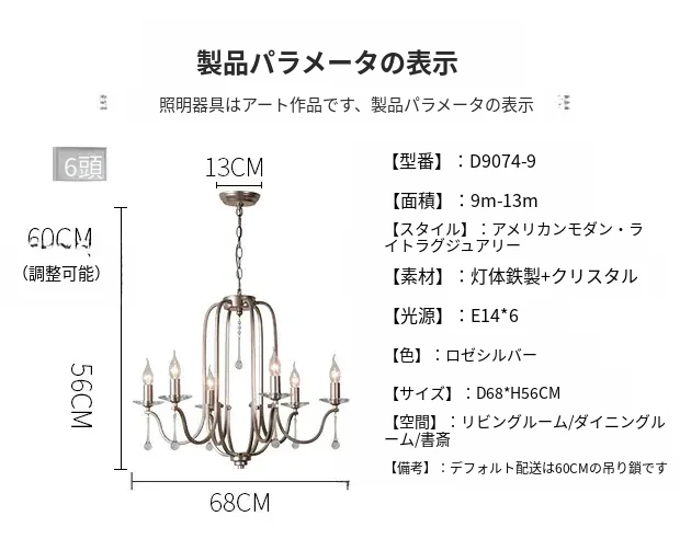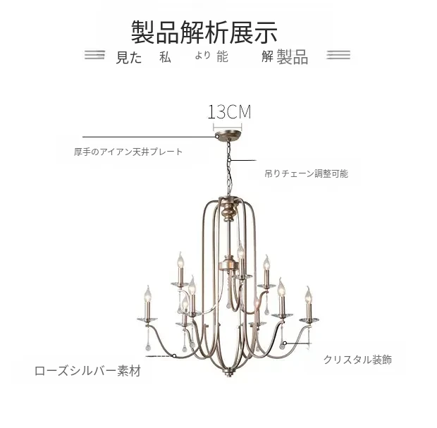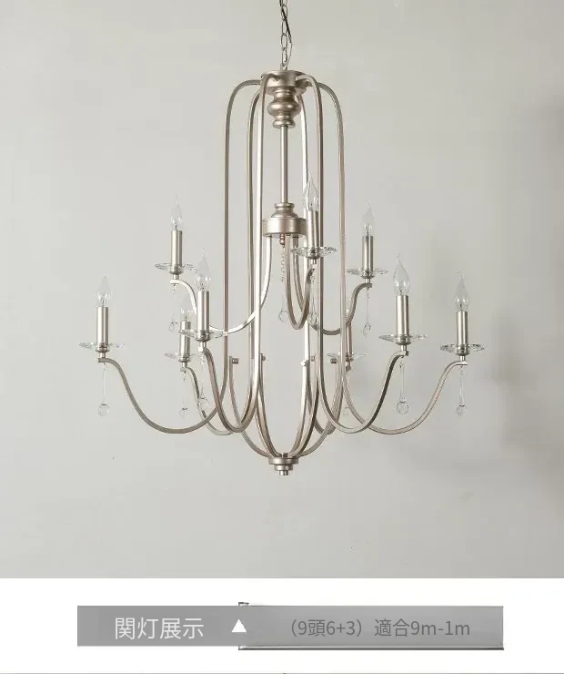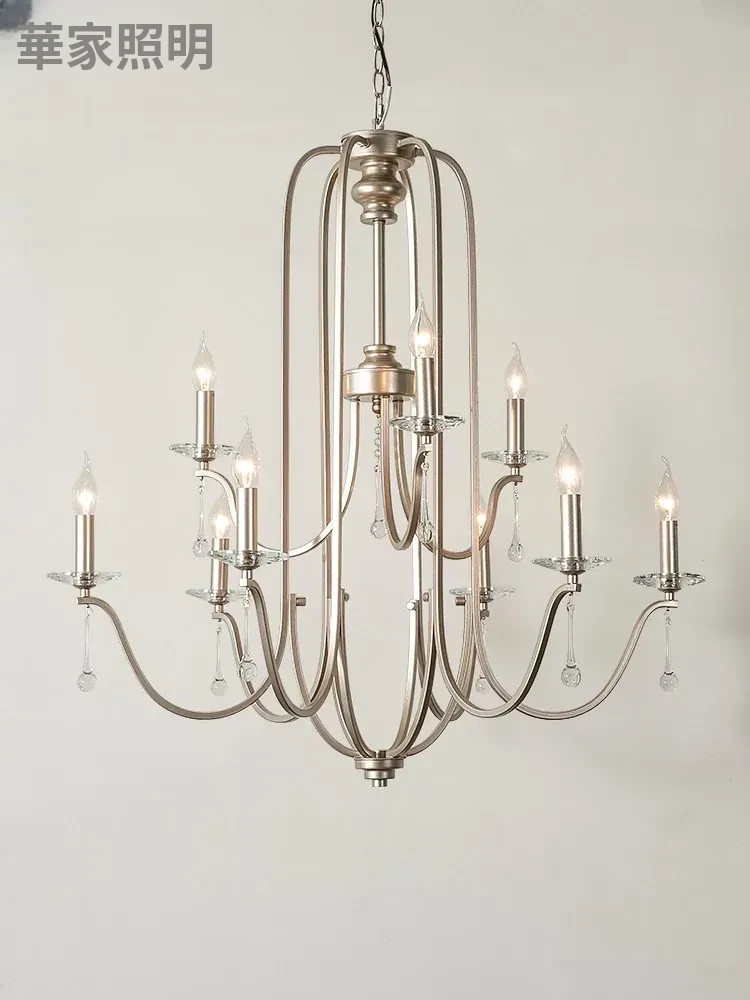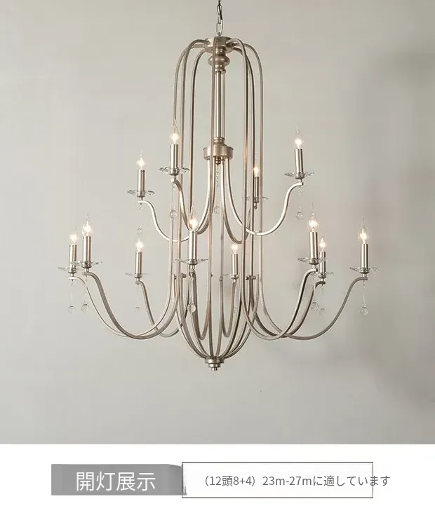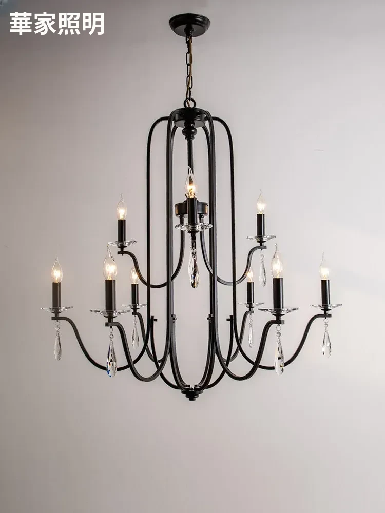 アメリカンスタイルの大きなシャンデリア - ヴィラやメゾネットに最適!フレンチシックな軽奢デザイン、アイアンとクリスタルの融合で、民宿やレストランにぴったりの創造的な照明器具。あなたの空間を華やかに演出します!