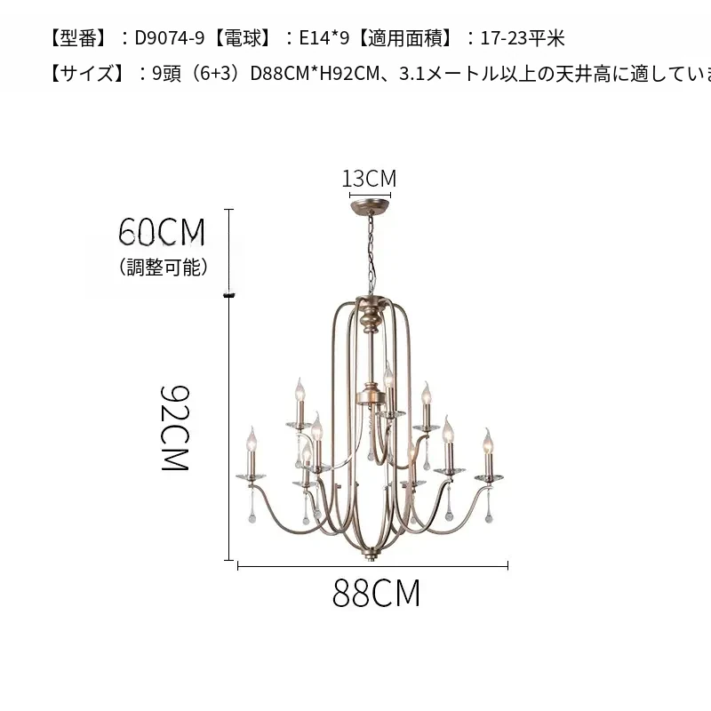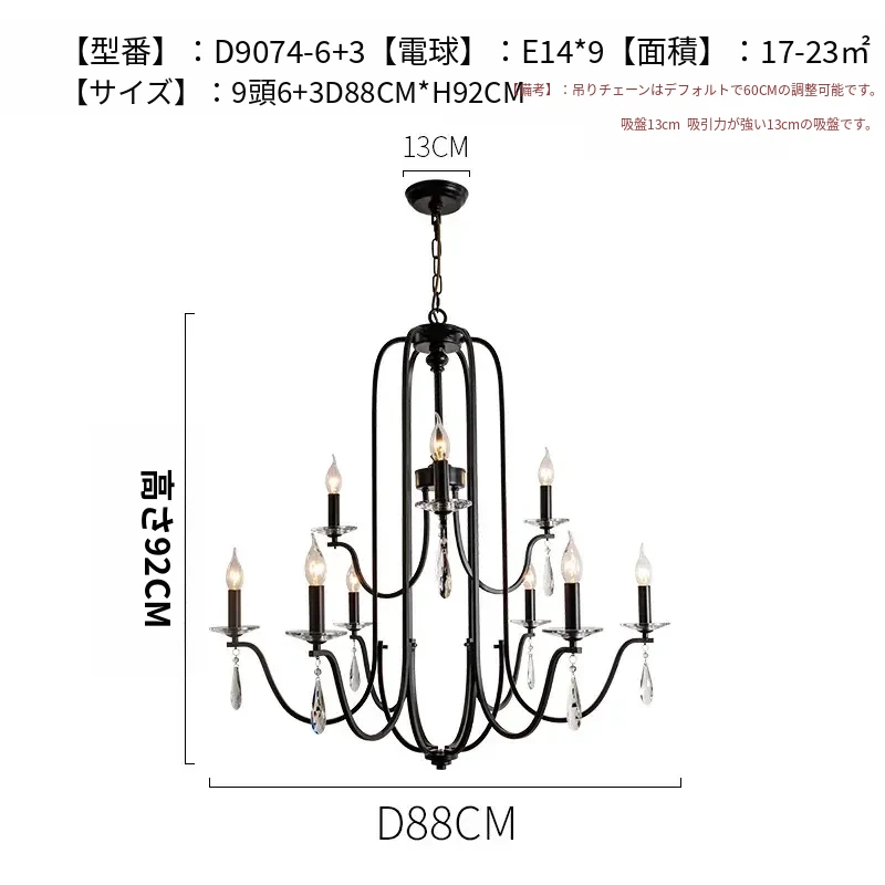 D88*H92CM 9灯 黒色 バースト水晶吊り下げ