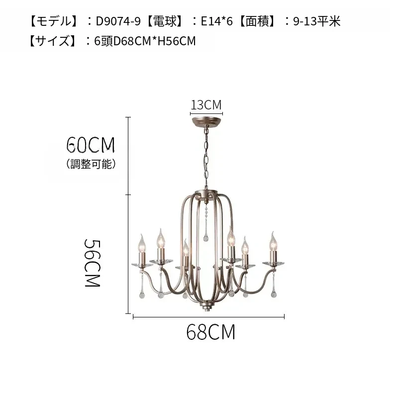 D68*H56CM 6灯 黒色 バースト水晶吊り下げ
