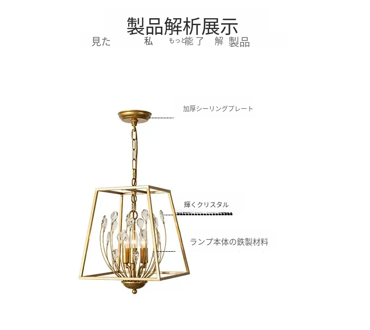 アメリカンスタイルのペンダントライト、寝室やクローゼット、玄関、廊下に最適!軽やかなラグジュアリー感、クリエイティブなケージデザインのバルコニー用クリスタルライトで、空間を華やかに演出します。