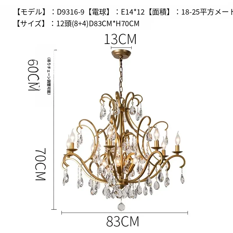 D83CM*H70CM 12灯(8+4)クリスタルタイプ