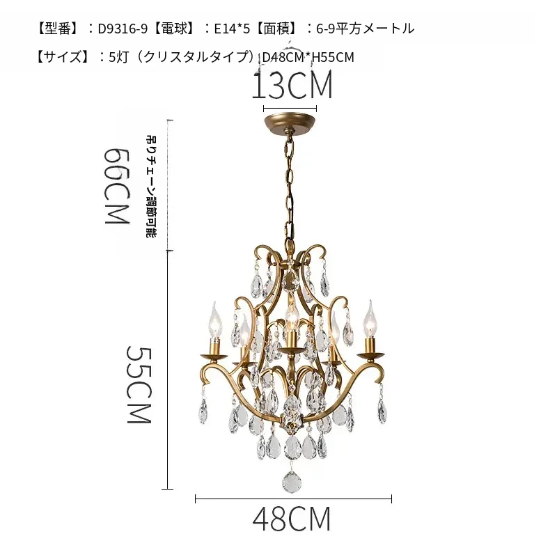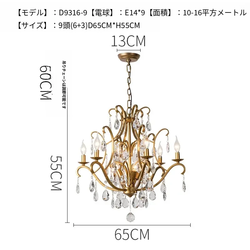 D65CM*H55CM 9灯(6+3)クリスタルタイプ