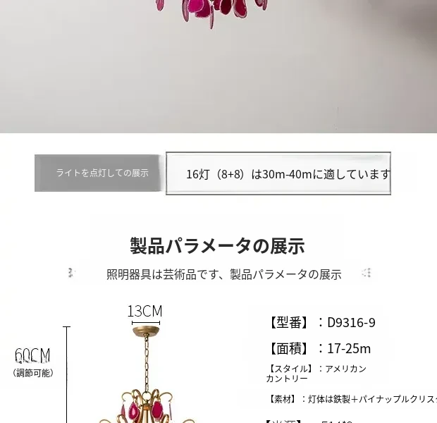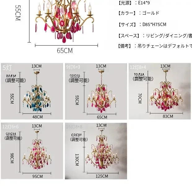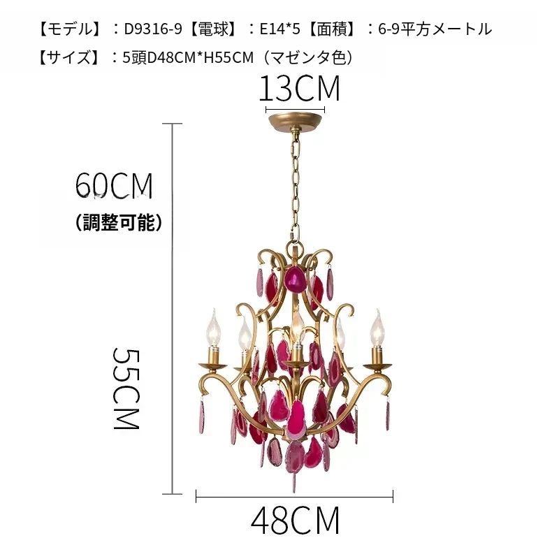 D65CM*H55CM 9灯(6+3)濃いピンク