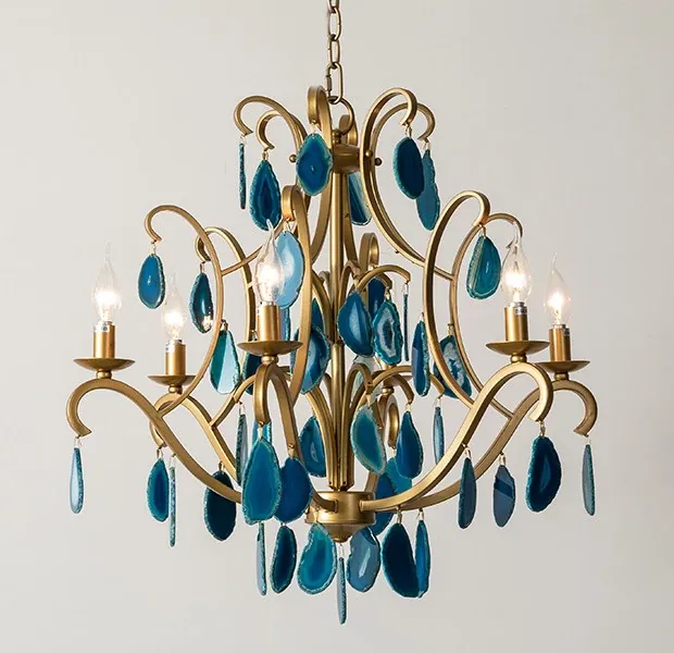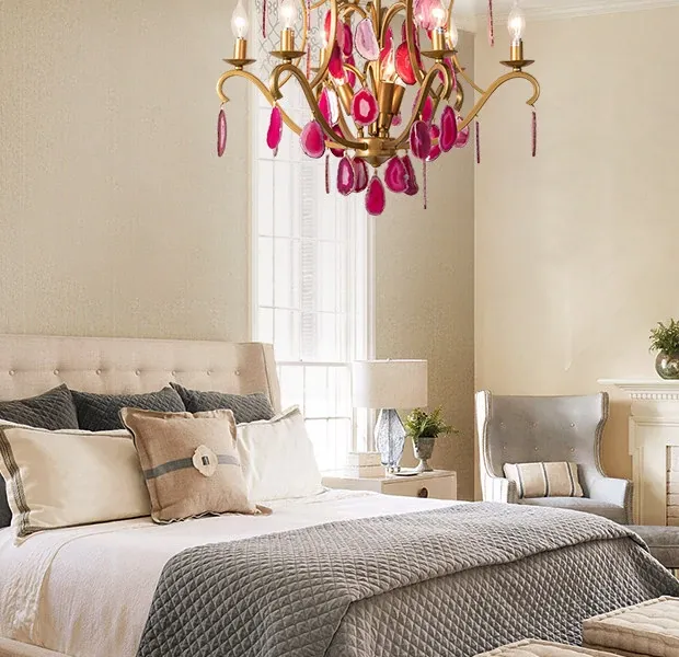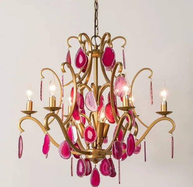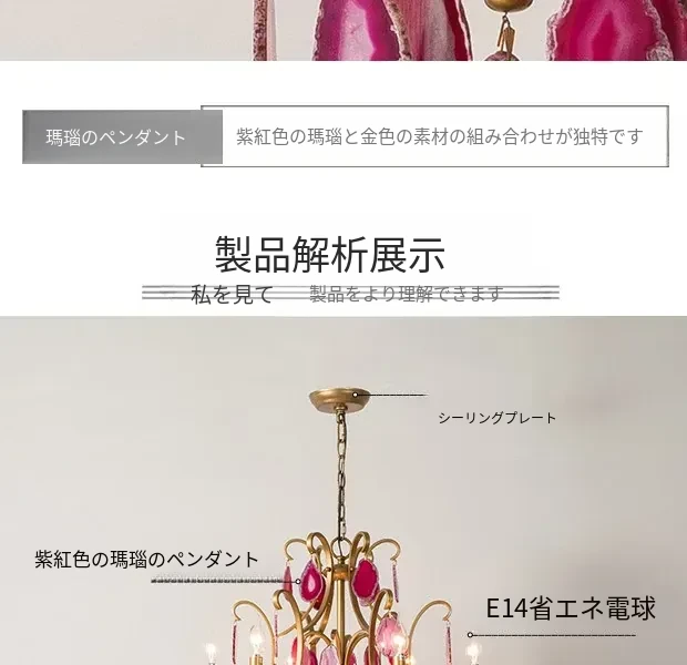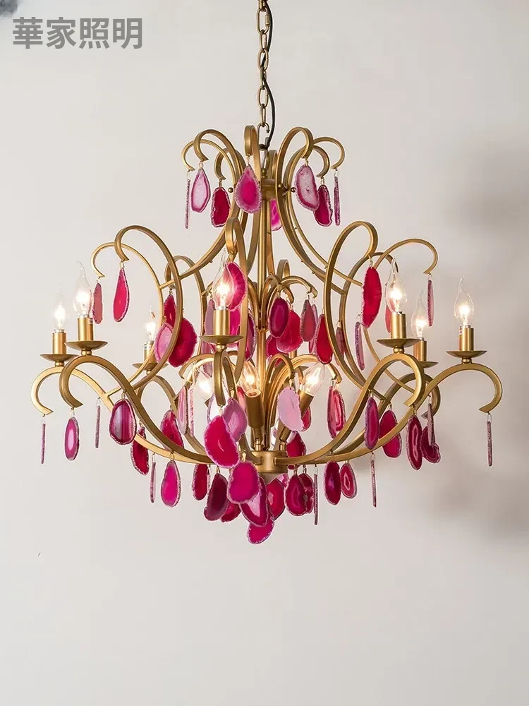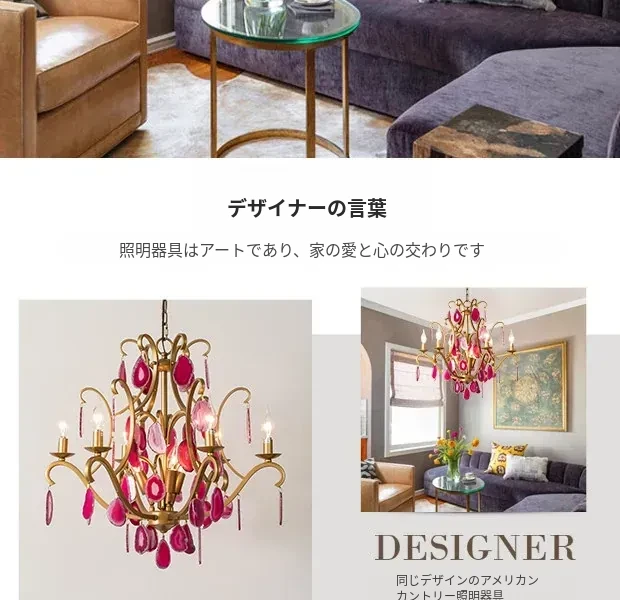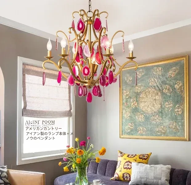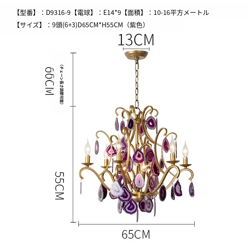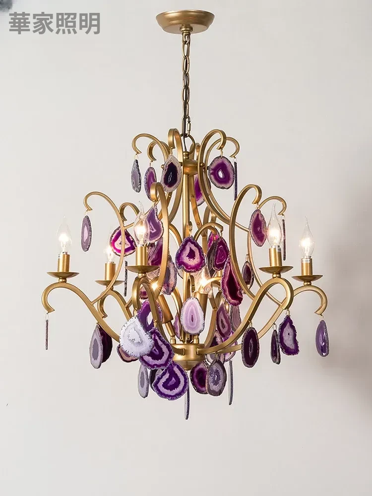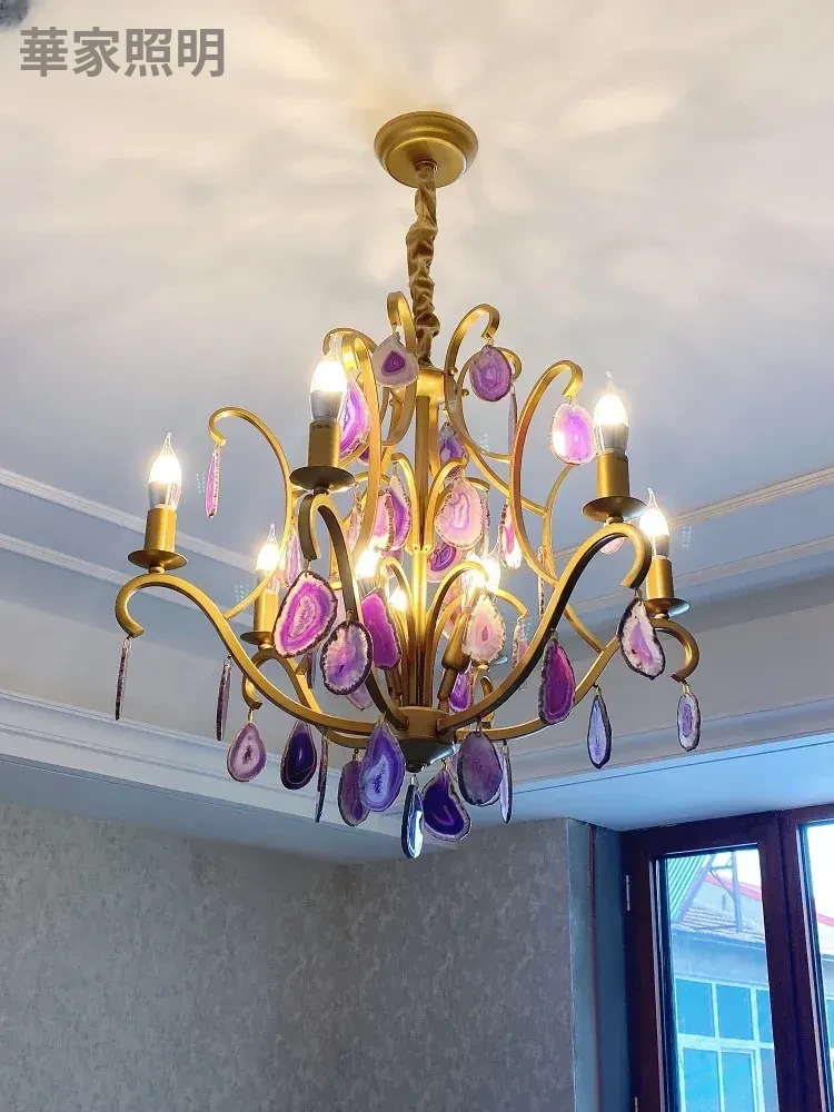 アメリカンスタイルのベッドルームシャンデリア、ダイニング用クリエイティブな個性的な照明、紫色のアゲートデザイン、ウォークインクローゼット用クリスタルライト、二重階建てのスタイリッシュな照明器具!