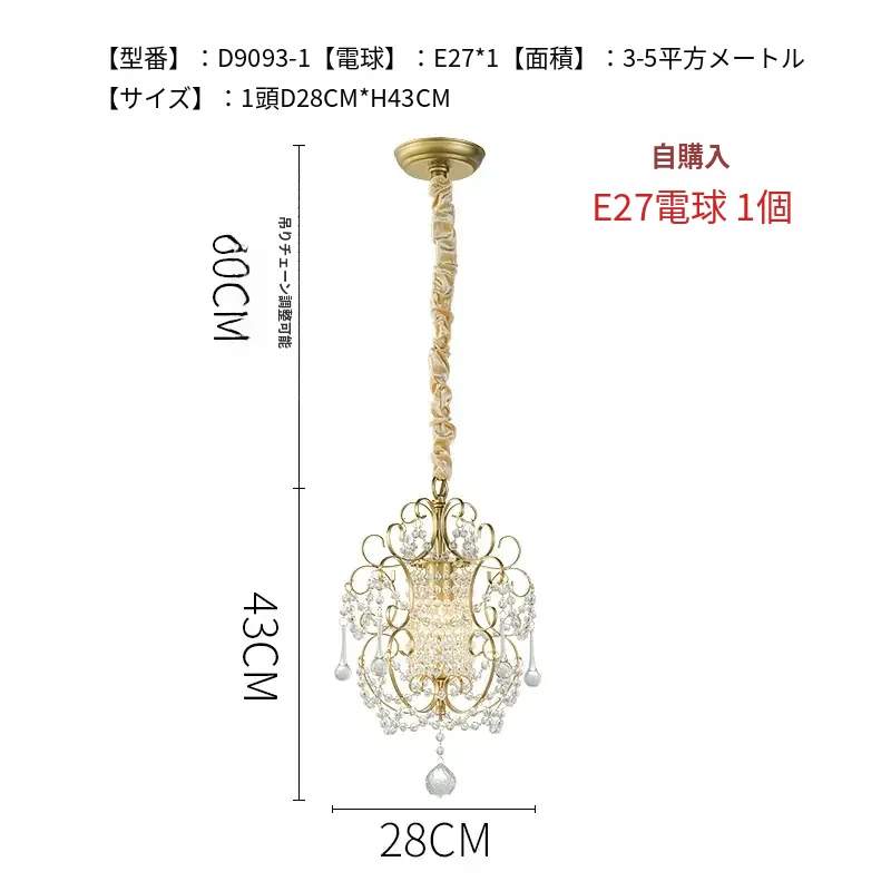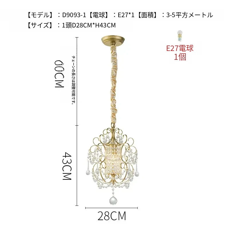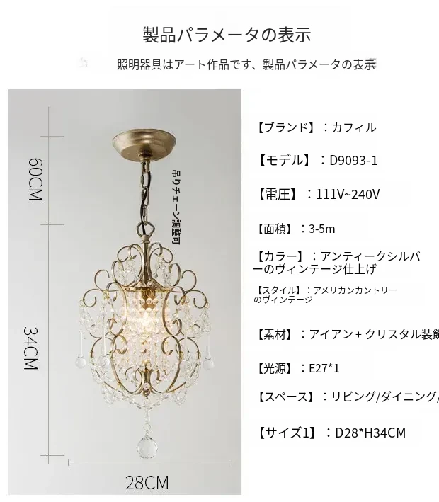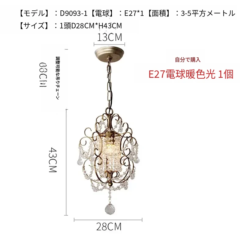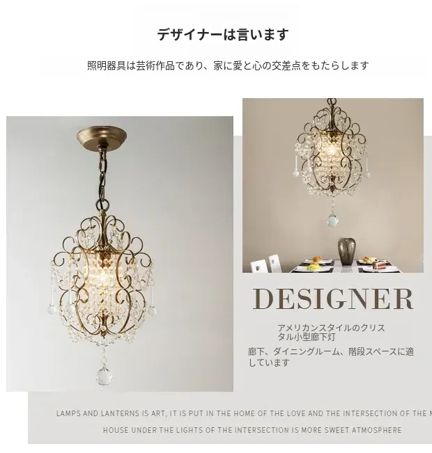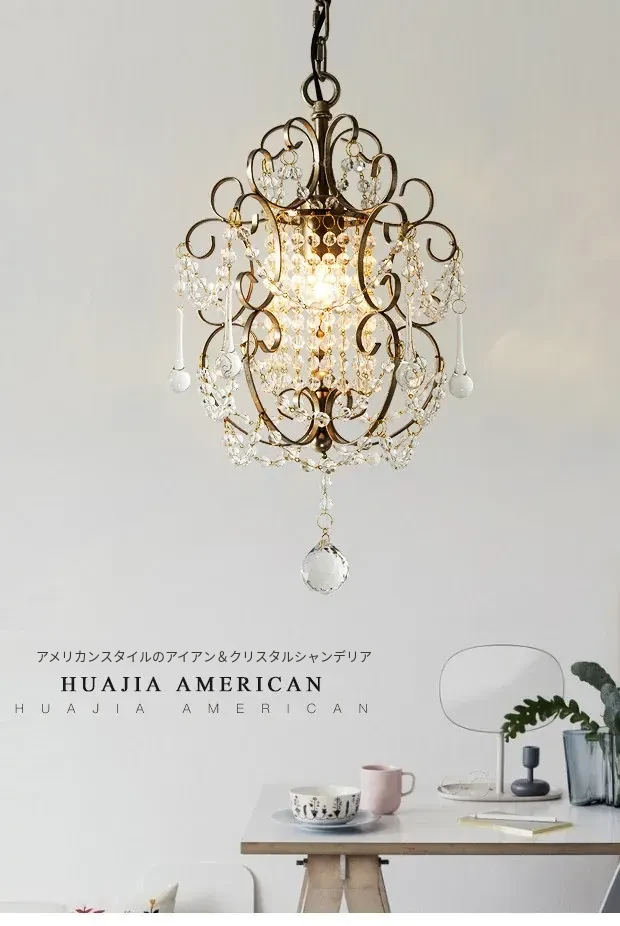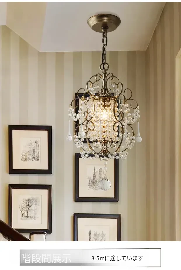 アメリカンカントリースタイルのペンダントライト - ダイニング、ベッドルーム、廊下、クローゼットに最適!シンプルでエレガントな一灯フレンチクリスタルライトで、温かみのある雰囲気を演出します。