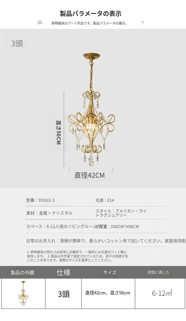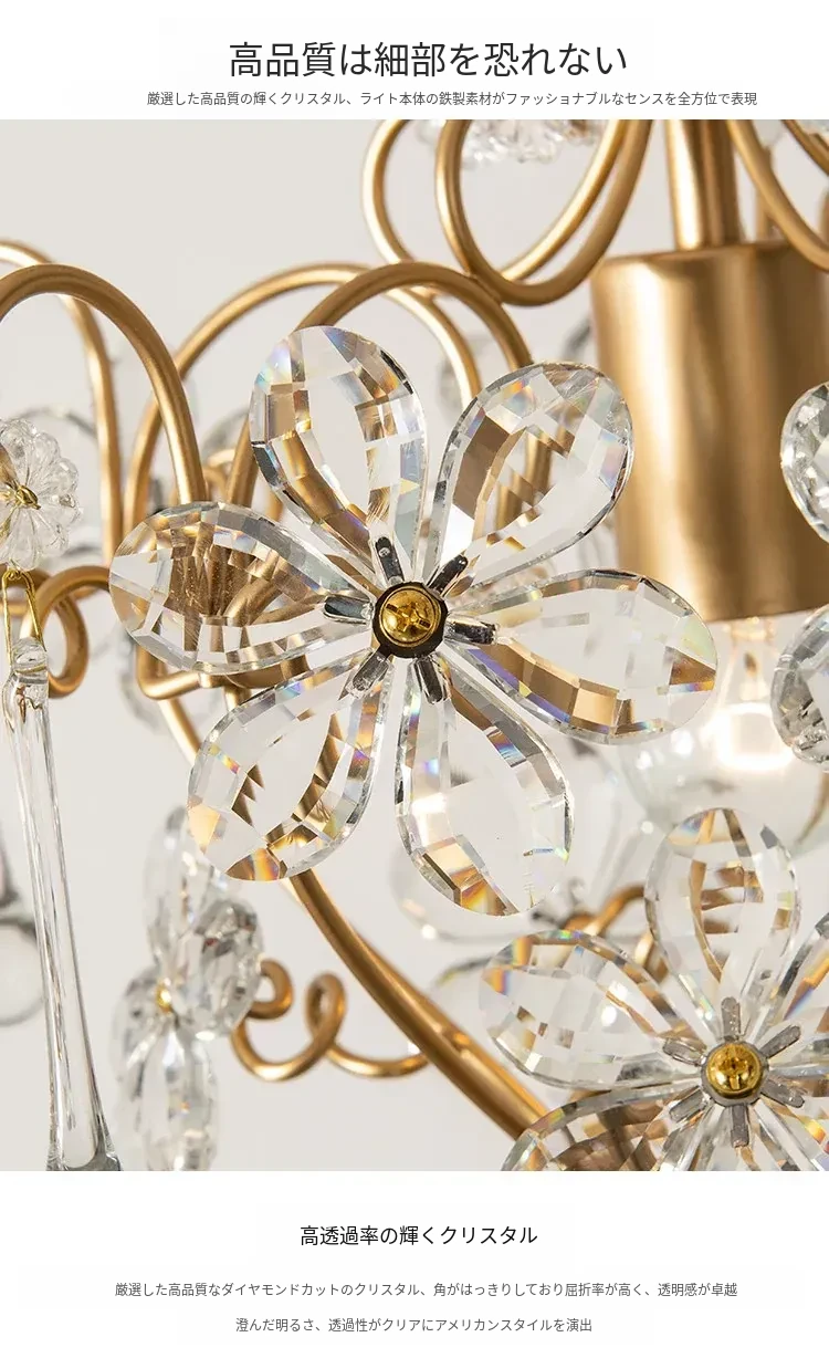 アメリカンスタイルのクリスタルミニシャンデリア - 個性的で洗練されたフレンチエレガンスを演出!高級感溢れるライトで、ダイニングルームやクローゼット、廊下、玄関を華やかに彩ります。