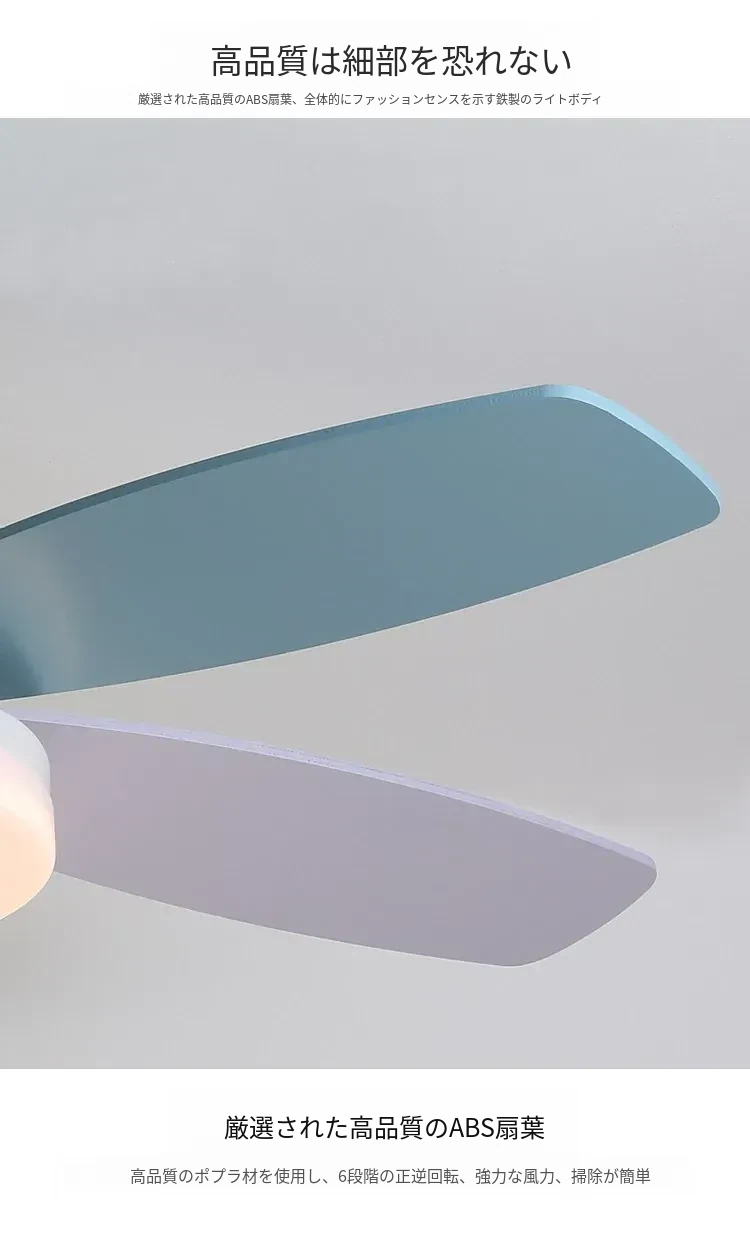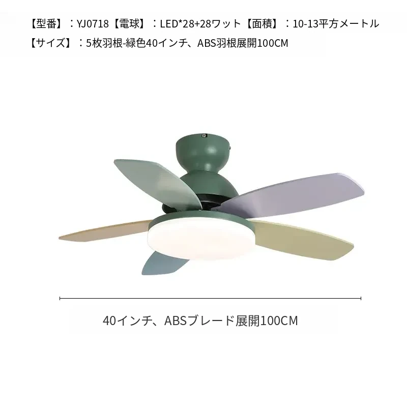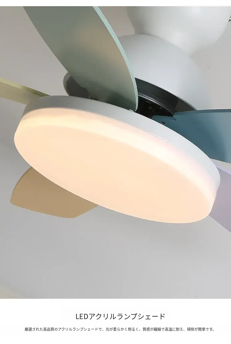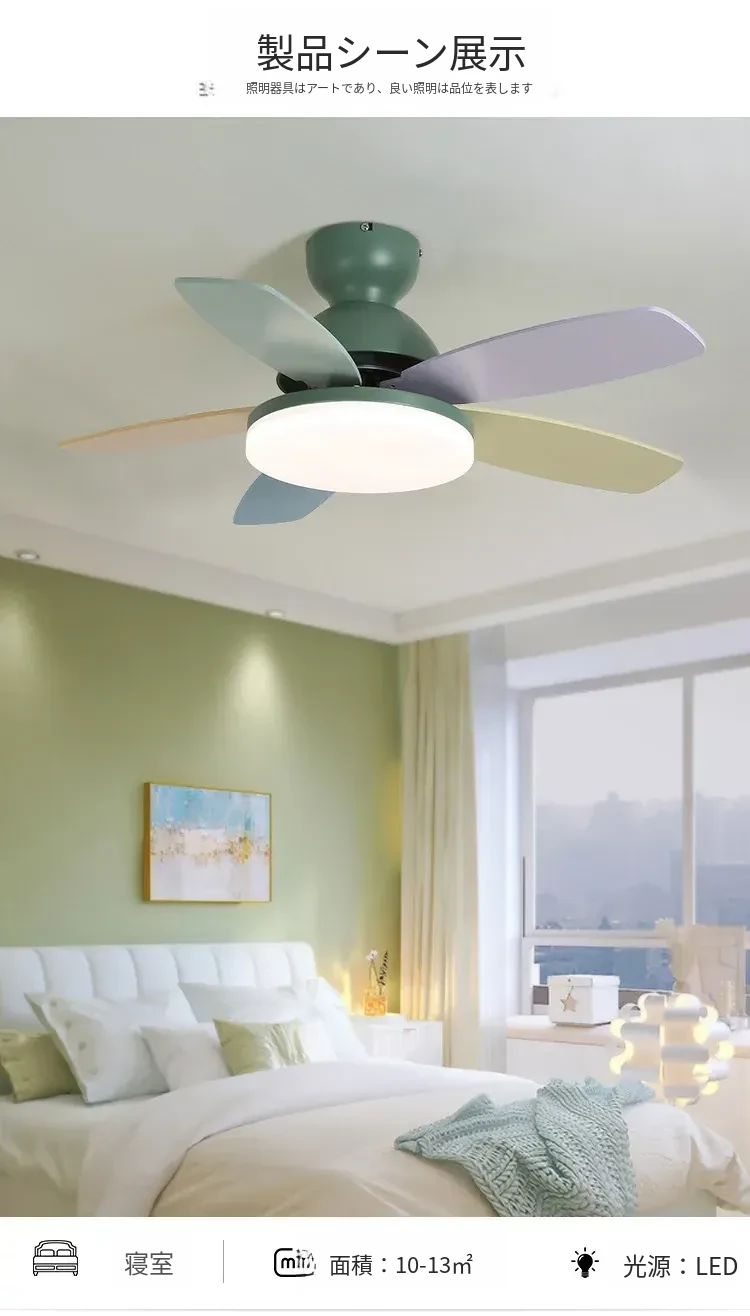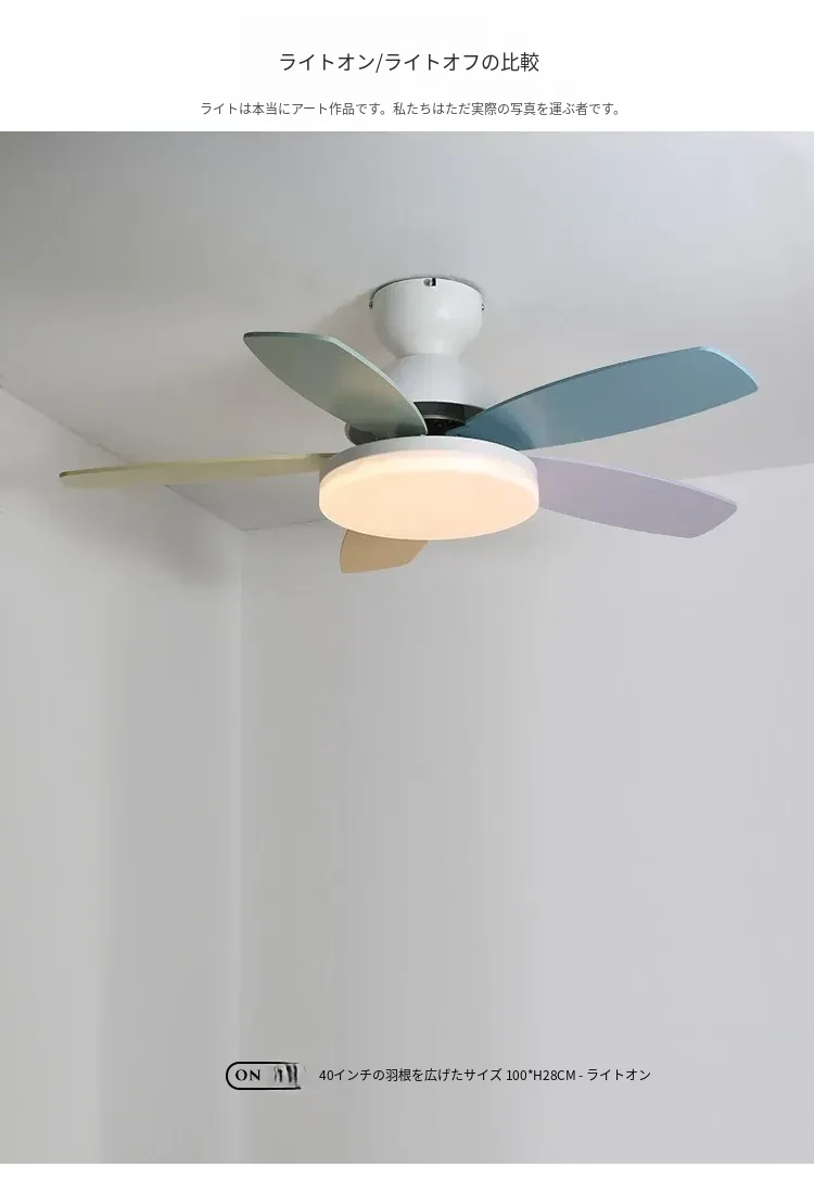 アメリカン&フレンチスタイルの温かみあるカラフルなカートゥーンデザイン!マカロンカラーの子供部屋用ファンライト&ダイニングルーム用一体型吊り下げ照明で、心地よい空間を演出します。