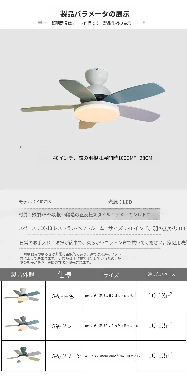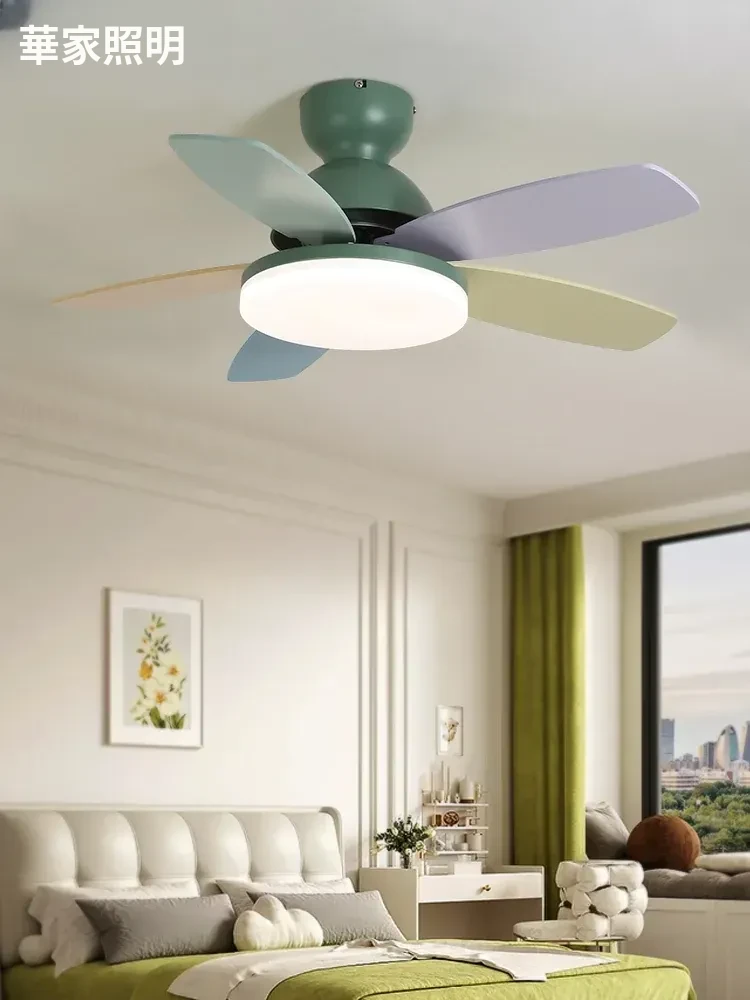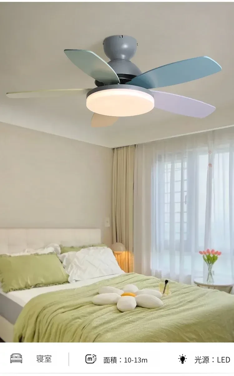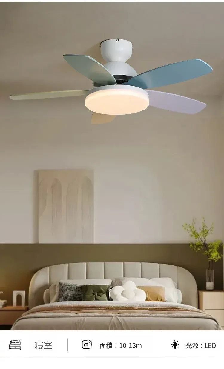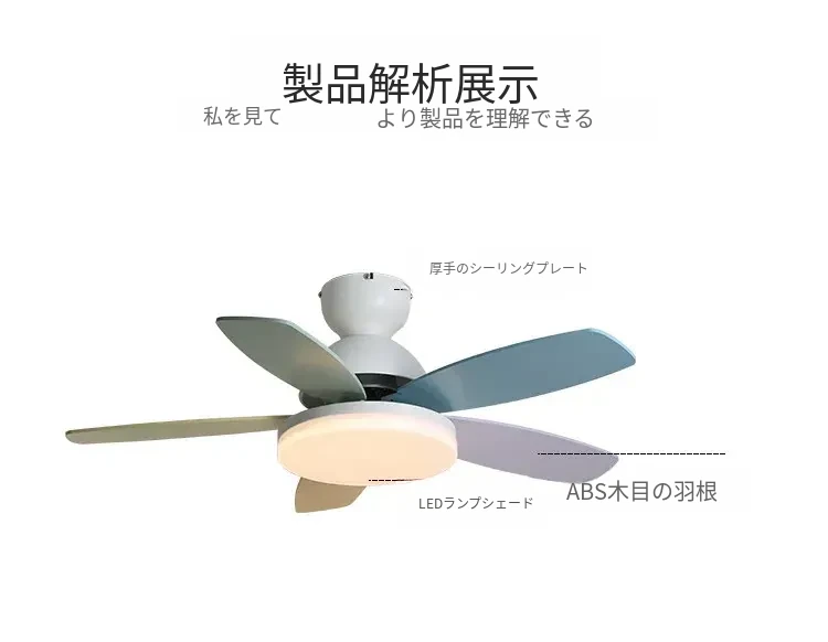 アメリカン&フレンチスタイルの温かみあるカラフルなカートゥーンデザイン!マカロンカラーの子供部屋用ファンライト&ダイニングルーム用一体型吊り下げ照明で、心地よい空間を演出します。